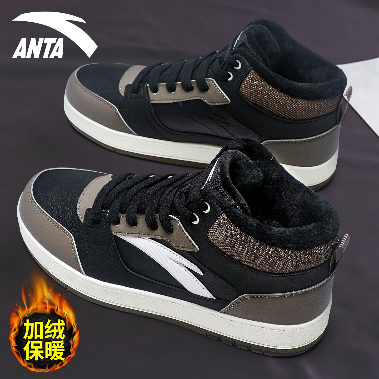 天猫安踏男鞋冬季加绒高帮板鞋2025新款加厚保暖棉鞋防滑休闲运动鞋子