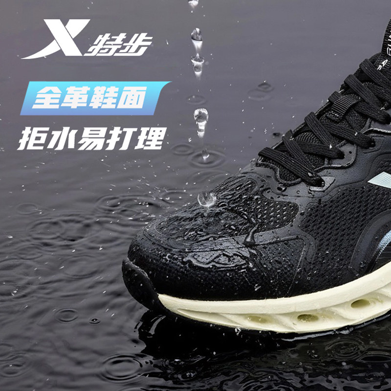 天猫特步男鞋减震跑鞋冬季新款皮面防水运动鞋青少年竞速训练跑步鞋男