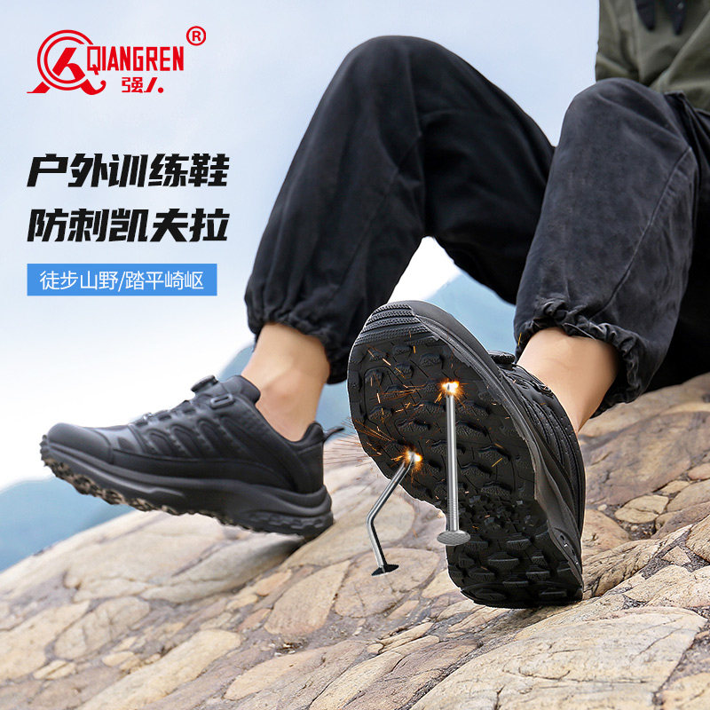 天猫强人3515男鞋户外鞋防刺穿战术鞋黑色厚底登山鞋运动徒步鞋自动扣