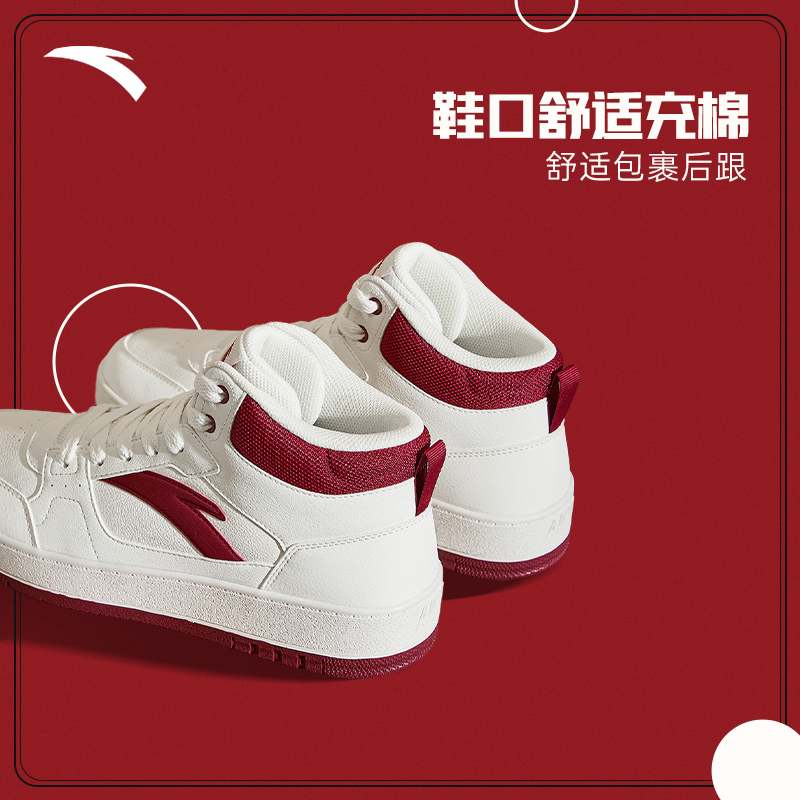 天猫安踏高帮红色板鞋男鞋冬季新款青年男士皮面防水休闲鞋子男新年款