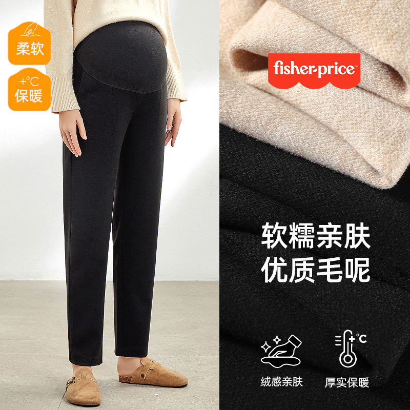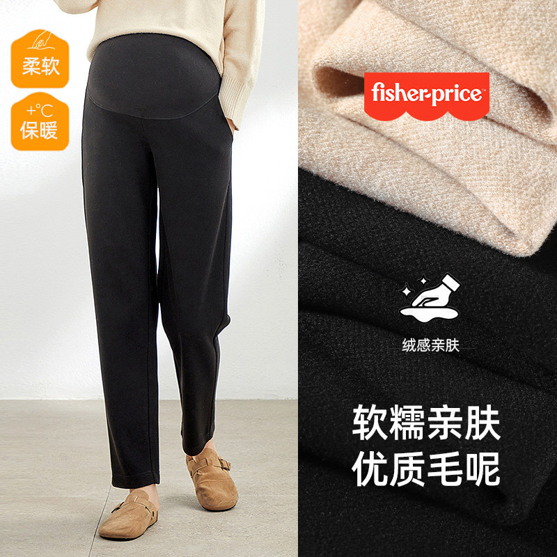 淘孕之彩孕妇加绒外穿阔腿裤冬季款保暖可调节冬季休闲直筒裤孕妇装