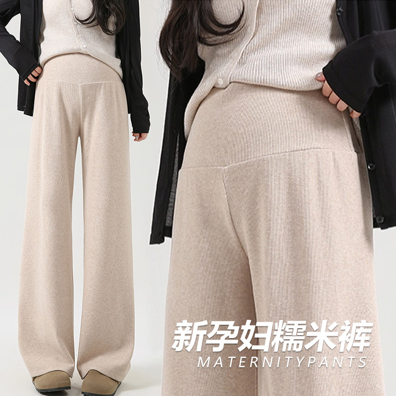 淘孕妇裤春秋冬外穿猪鼻扣糯米阔腿打底裤休闲托腹加绒加厚长裤冬装