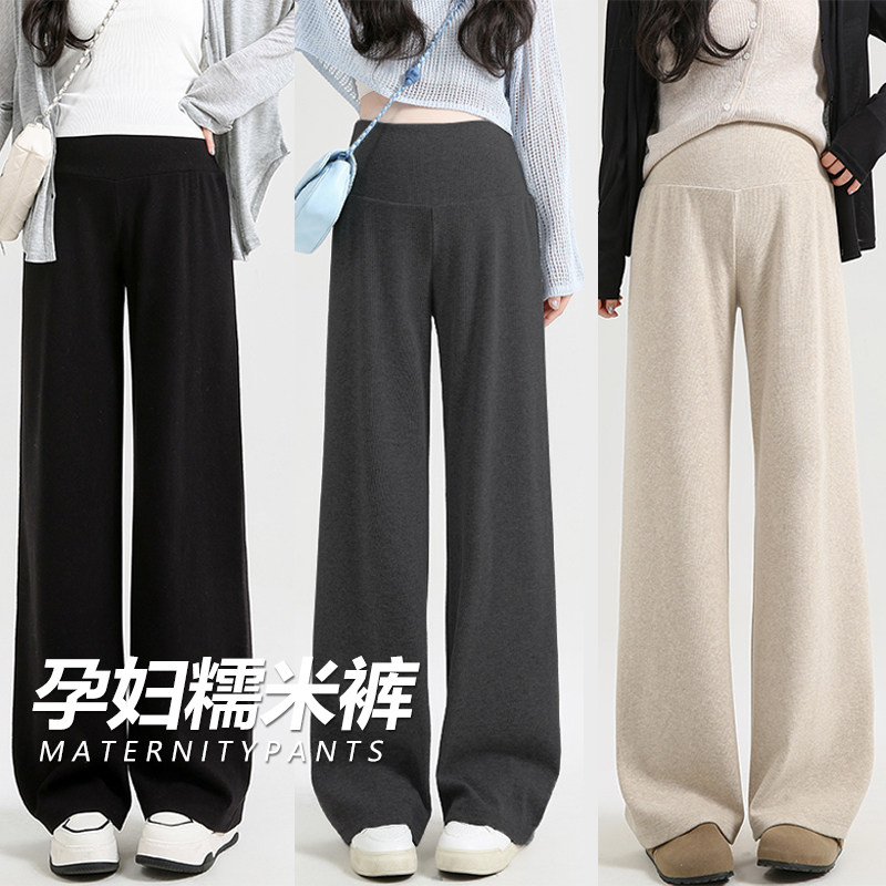 淘费雪孕妇阔腿裤秋冬外穿2025新款加绒大码直筒不勒肚子加厚糯米裤
