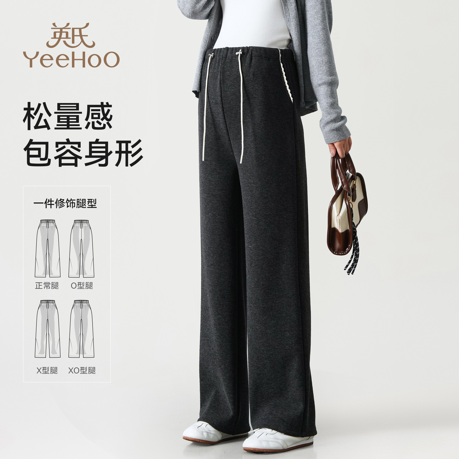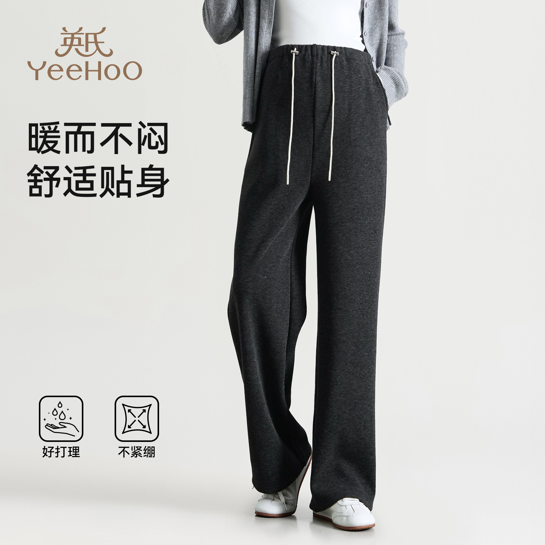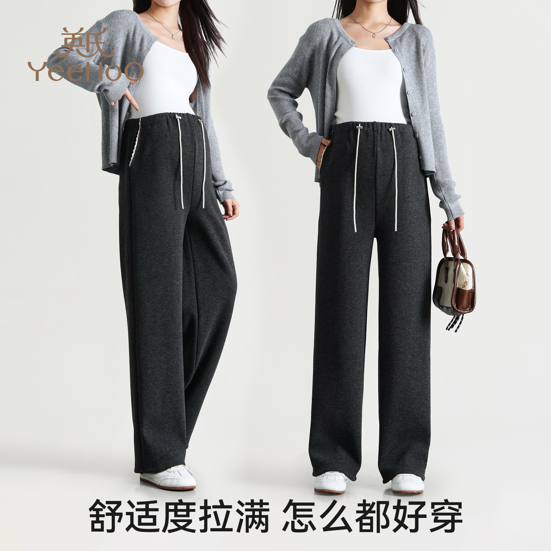 天猫英氏孕妇休闲裤秋冬新款加绒保暖直筒裤冬季可外穿显瘦百搭阔腿裤