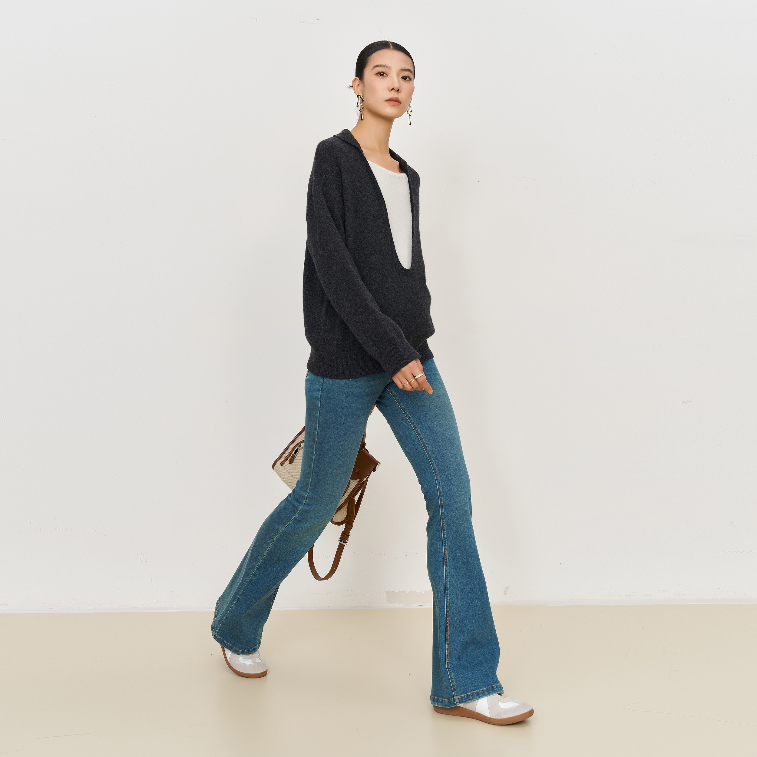 天猫SELLYNEAR孕妇裤秋冬外穿新款时尚修身显瘦加绒保暖牛仔喇叭长裤
