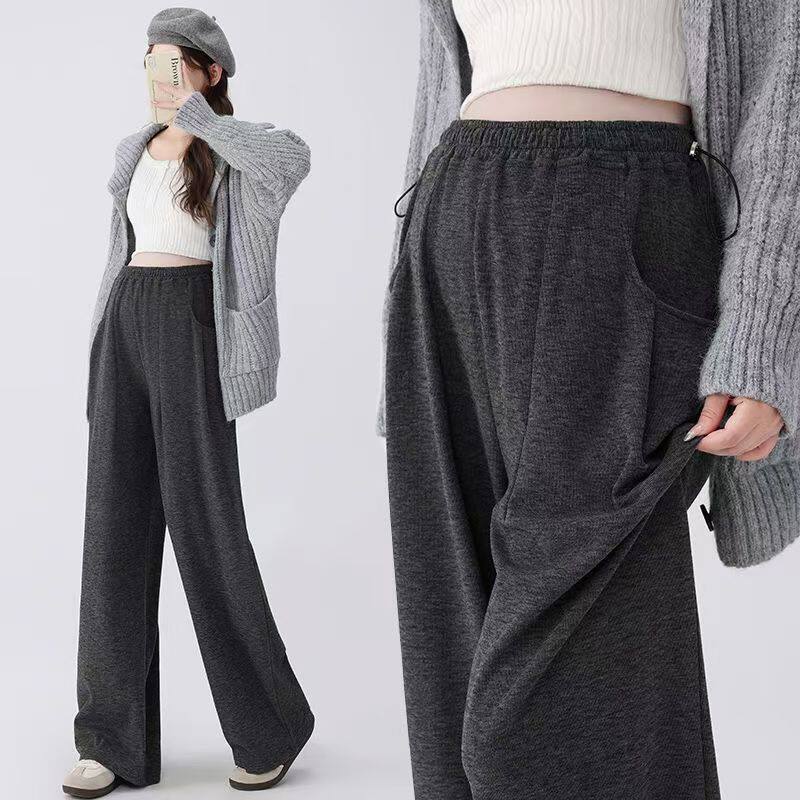 淘费雪孕妇阔腿裤秋冬外穿2025新款加绒大码直筒不勒肚子加厚糯米裤