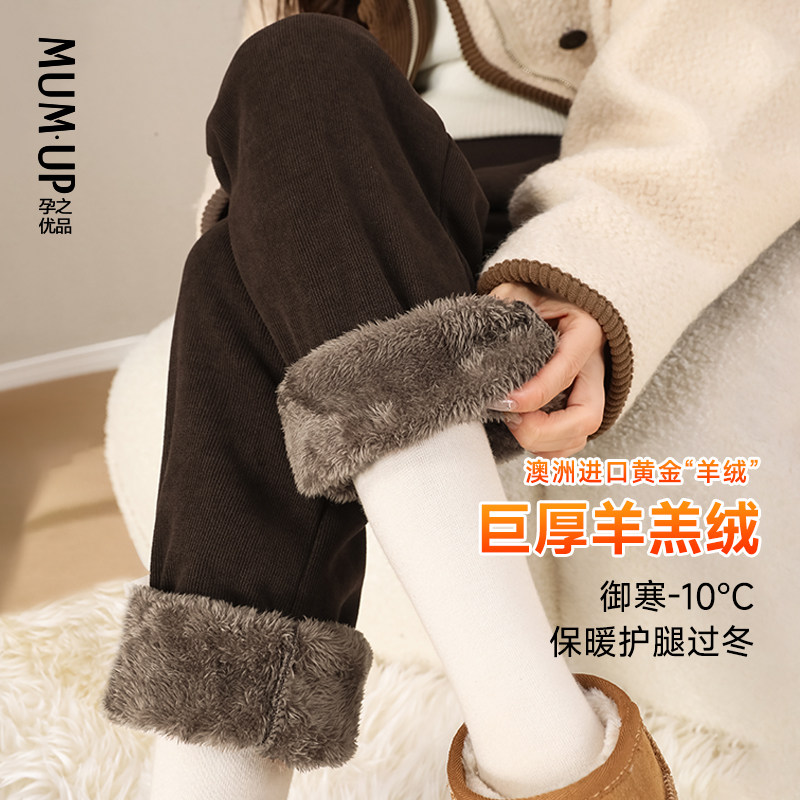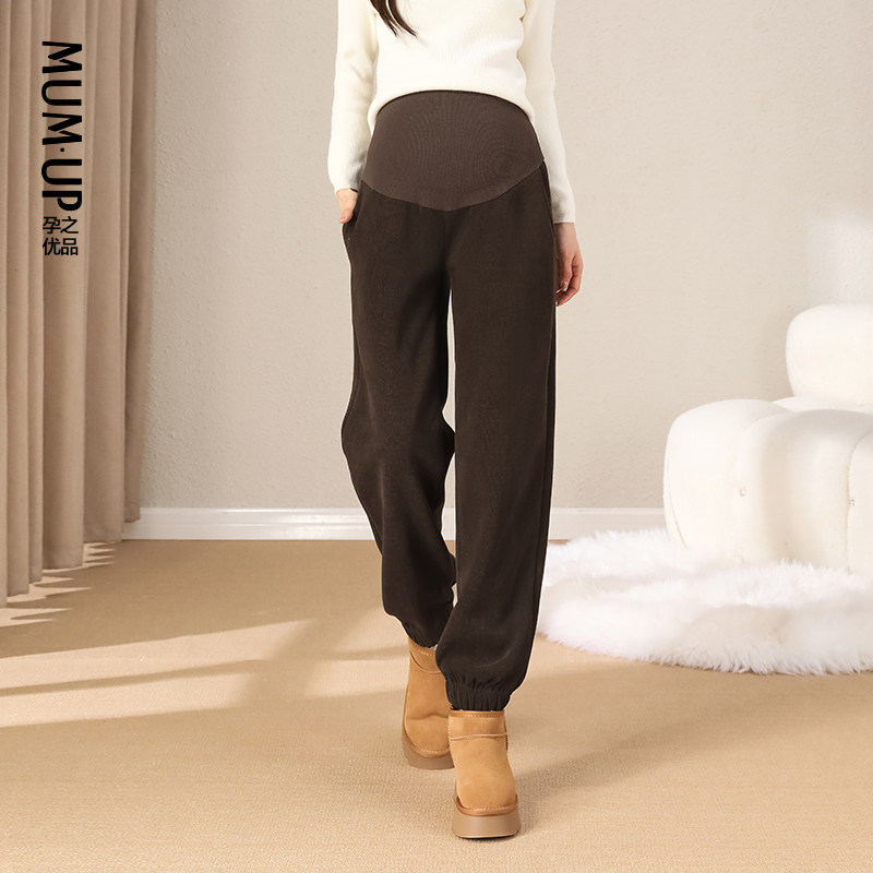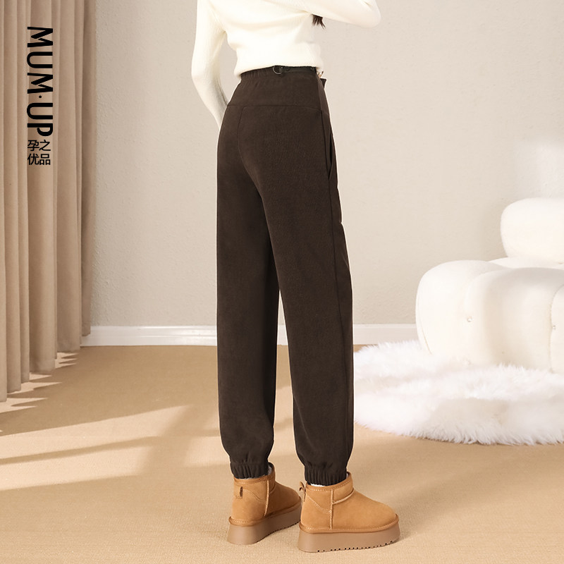 孕之优品孕妇裤冬季外穿加绒加厚托腹运动裤束脚裤北方羊羔绒卫裤