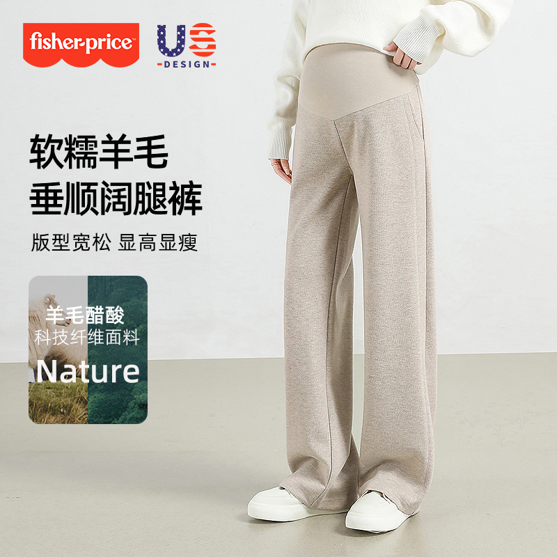 淘宝费雪孕妇裤冬外穿2025秋冬大码加绒加厚糯米醋酸羊毛小个子阔腿裤