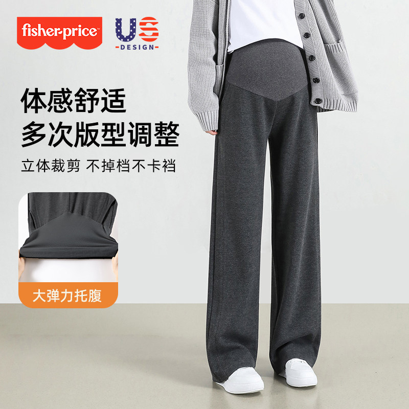 费雪孕妇阔腿裤秋冬外穿2025新款加绒大码直筒不勒肚子加厚糯米裤