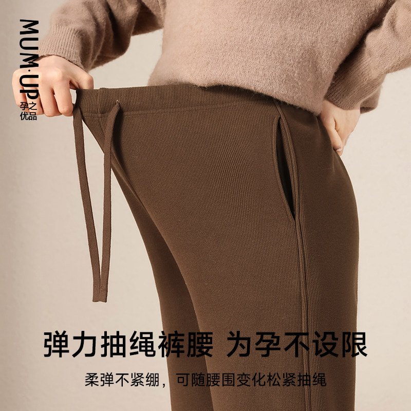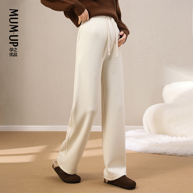 淘孕之彩孕妇加绒外穿阔腿裤冬季款保暖可调节冬季休闲直筒裤孕妇装