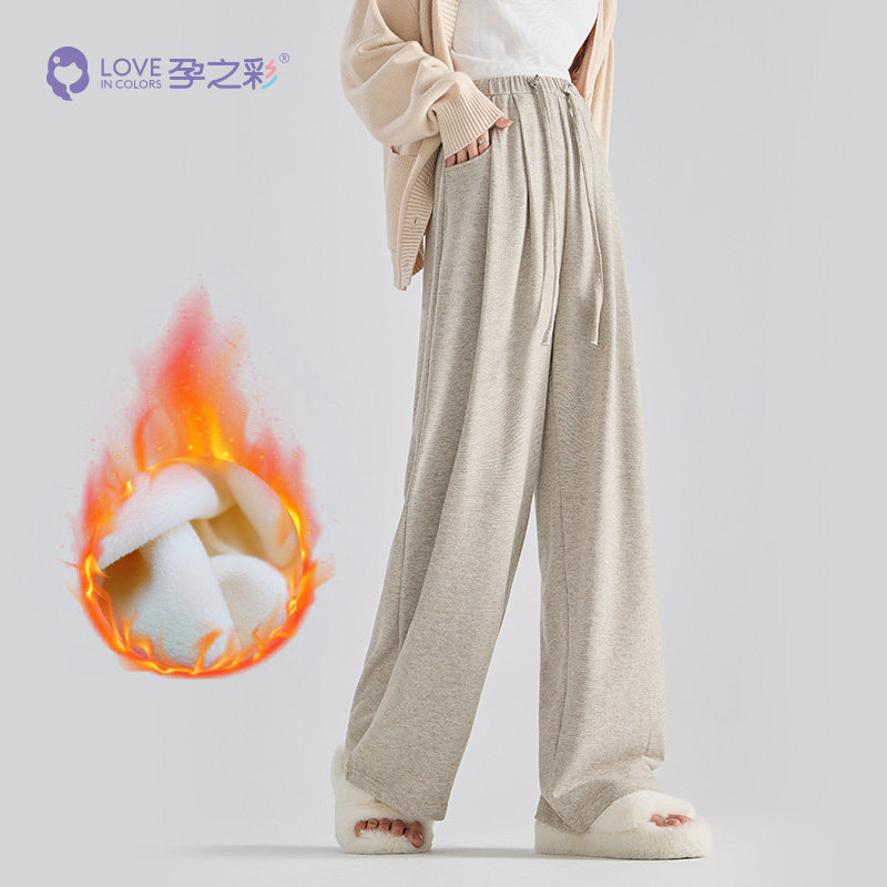 淘孕之彩孕妇加绒外穿阔腿裤冬季款保暖可调节冬季休闲直筒裤孕妇装