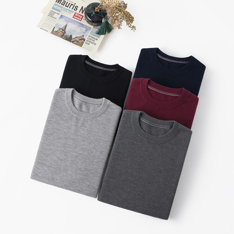 鄂尔多斯市男士加厚羊毛衫半高领打底针织衫圆领羊毛衫爸爸装毛衣