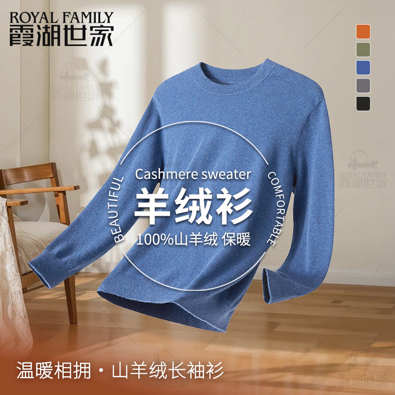 天猫【100%山羊绒】霞湖世家羊绒衫轻奢级软糯亲肤羊绒长袖毛衣 170A