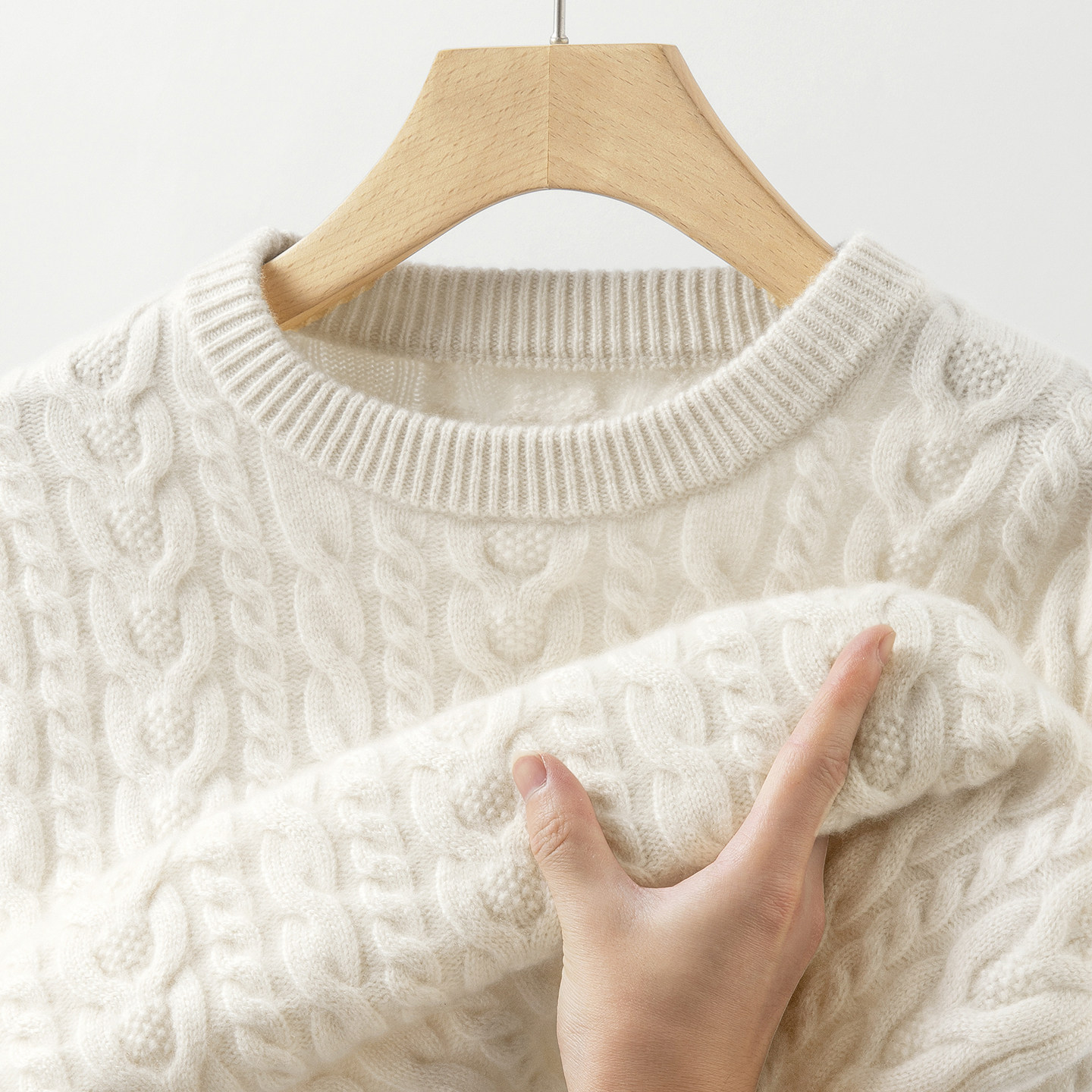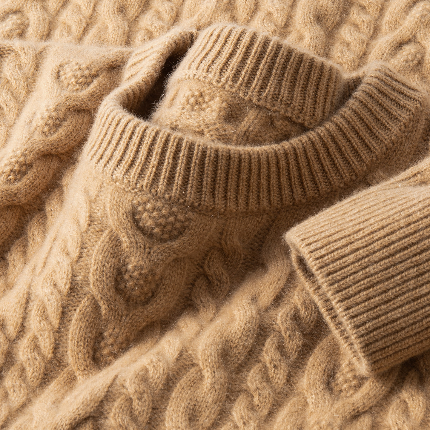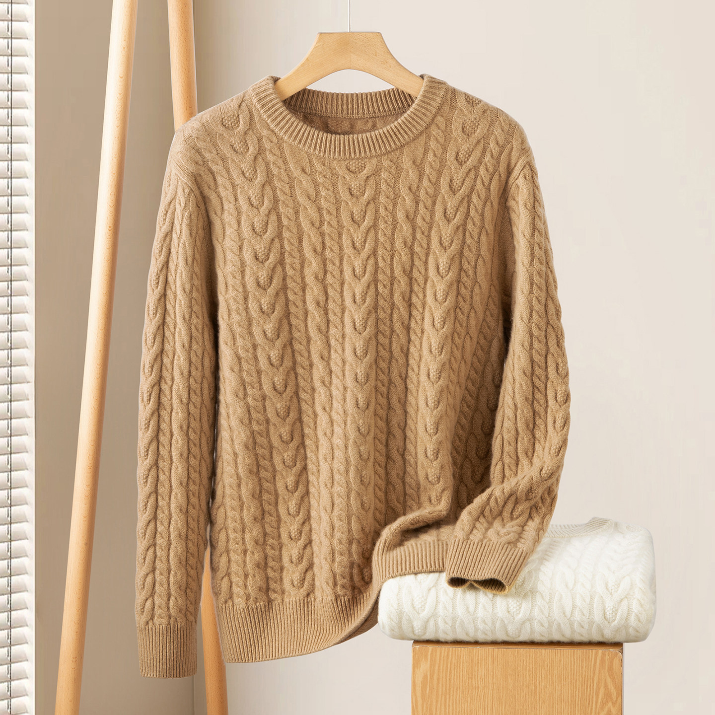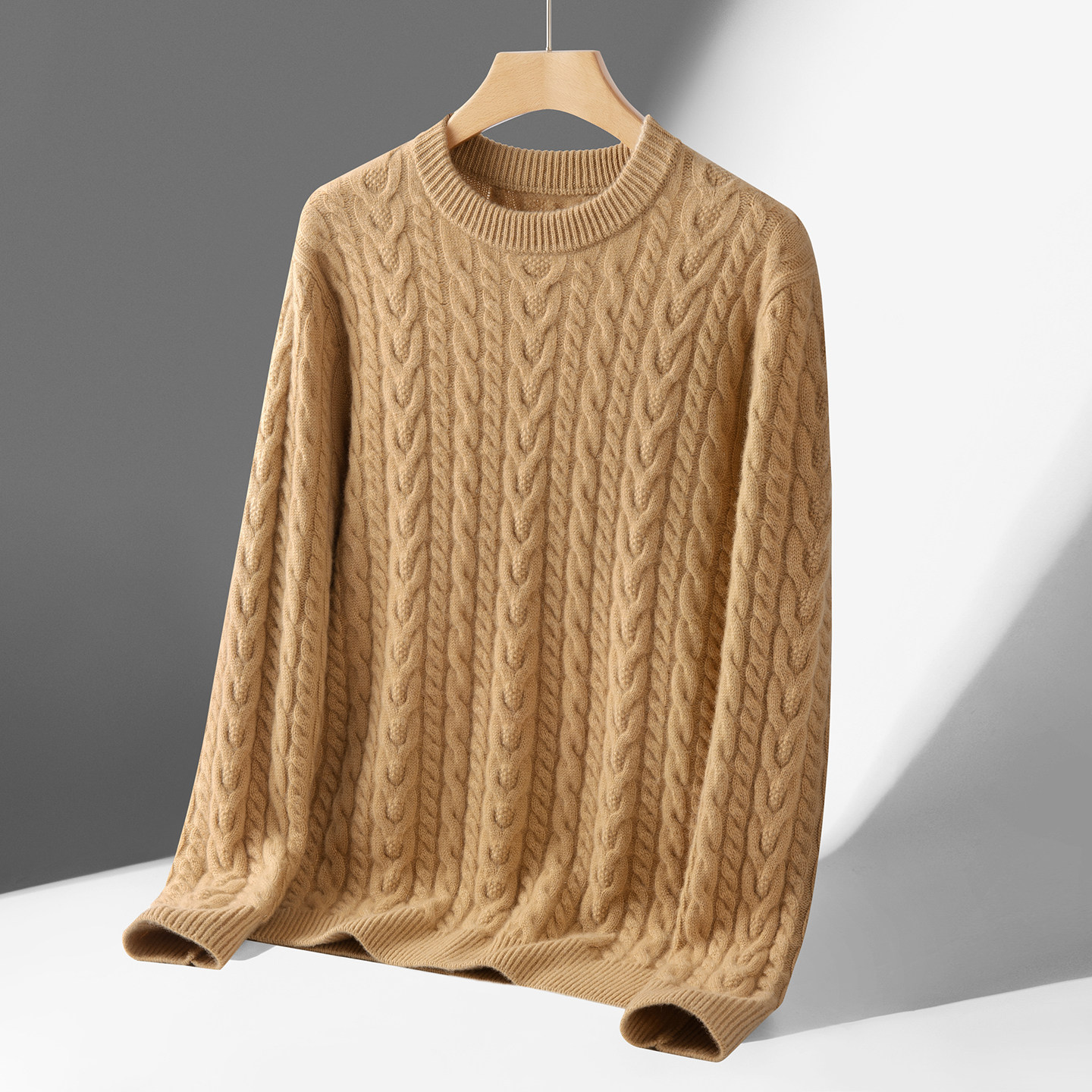 好看过冬哈~男士加厚羊绒衫圆领套头绞花纯羊绒毛衣针织衫宽松冬