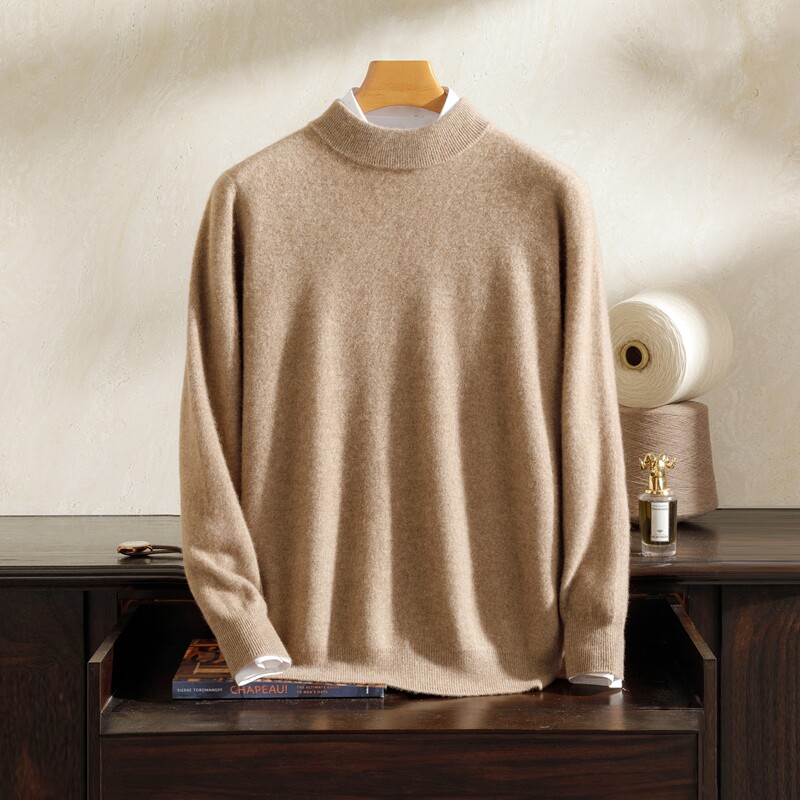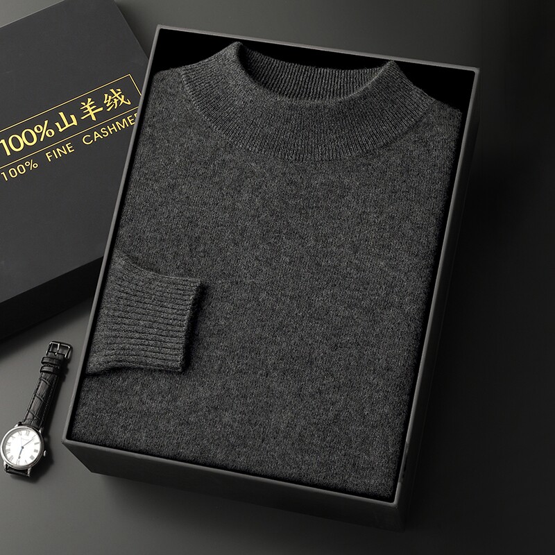 鄂尔多斯市男士加厚羊毛衫半高领打底针织衫圆领羊毛衫爸爸装毛衣