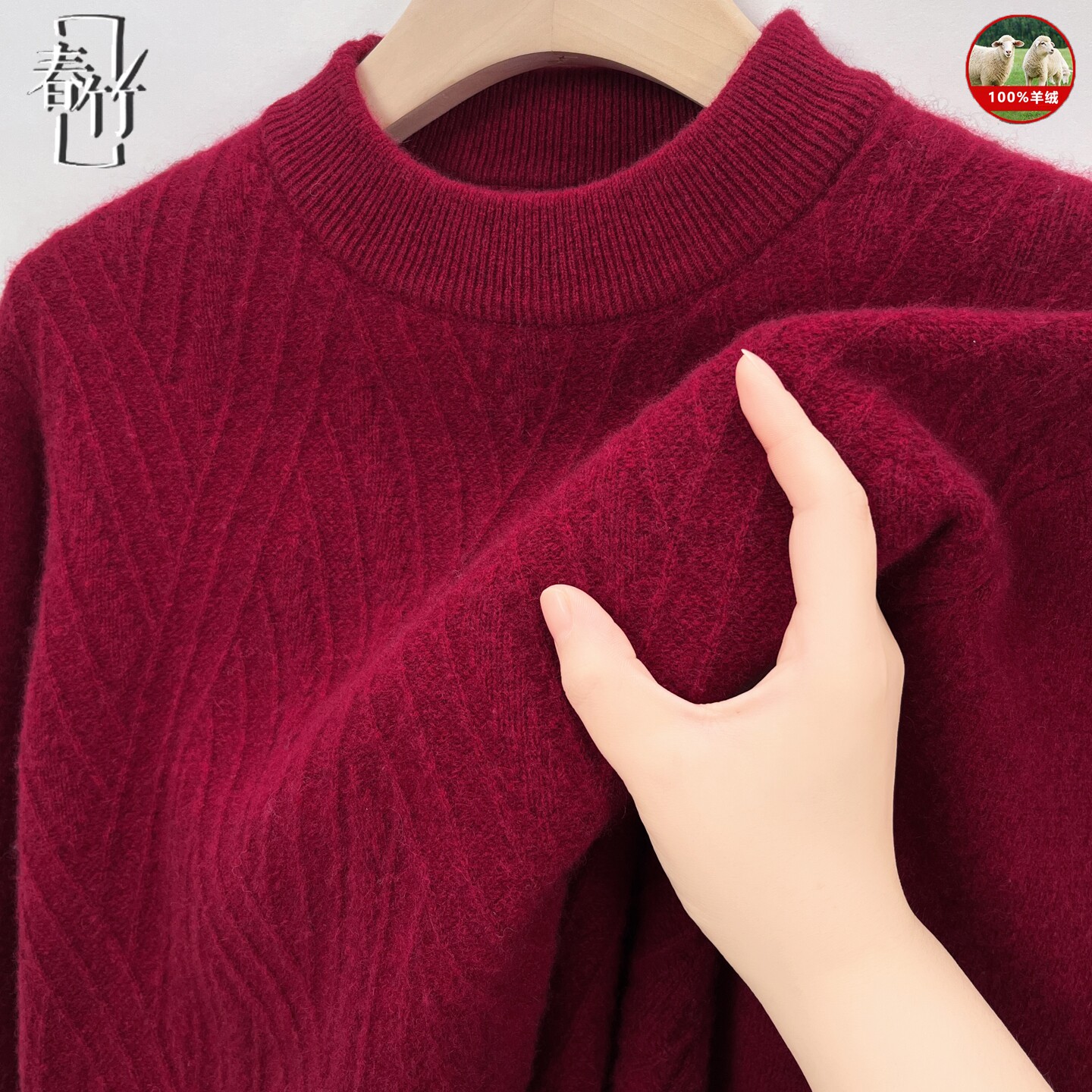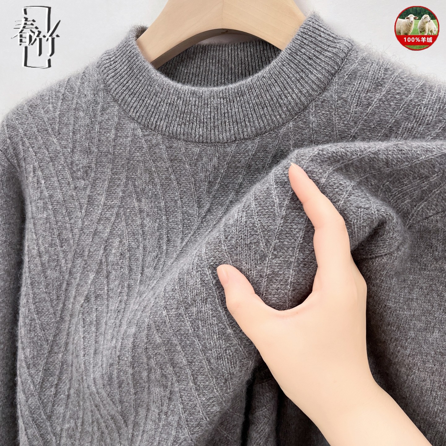 淘宝春竹男士羊绒衫半高圆领加厚提花纯色毛衣冬季新款套头针织打底衫