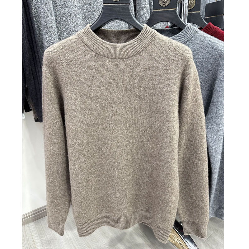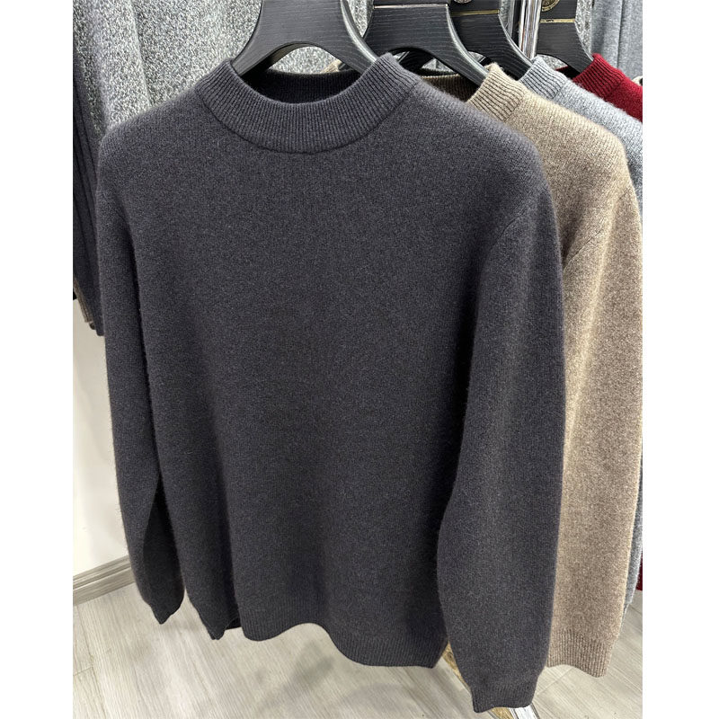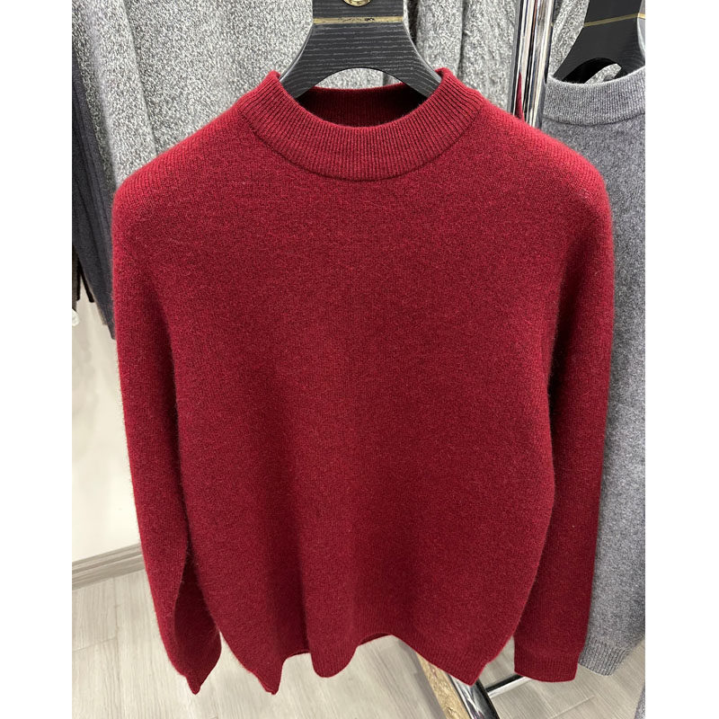 鄂尔多斯市男士加厚羊毛衫半高领打底针织衫圆领羊毛衫爸爸装毛衣