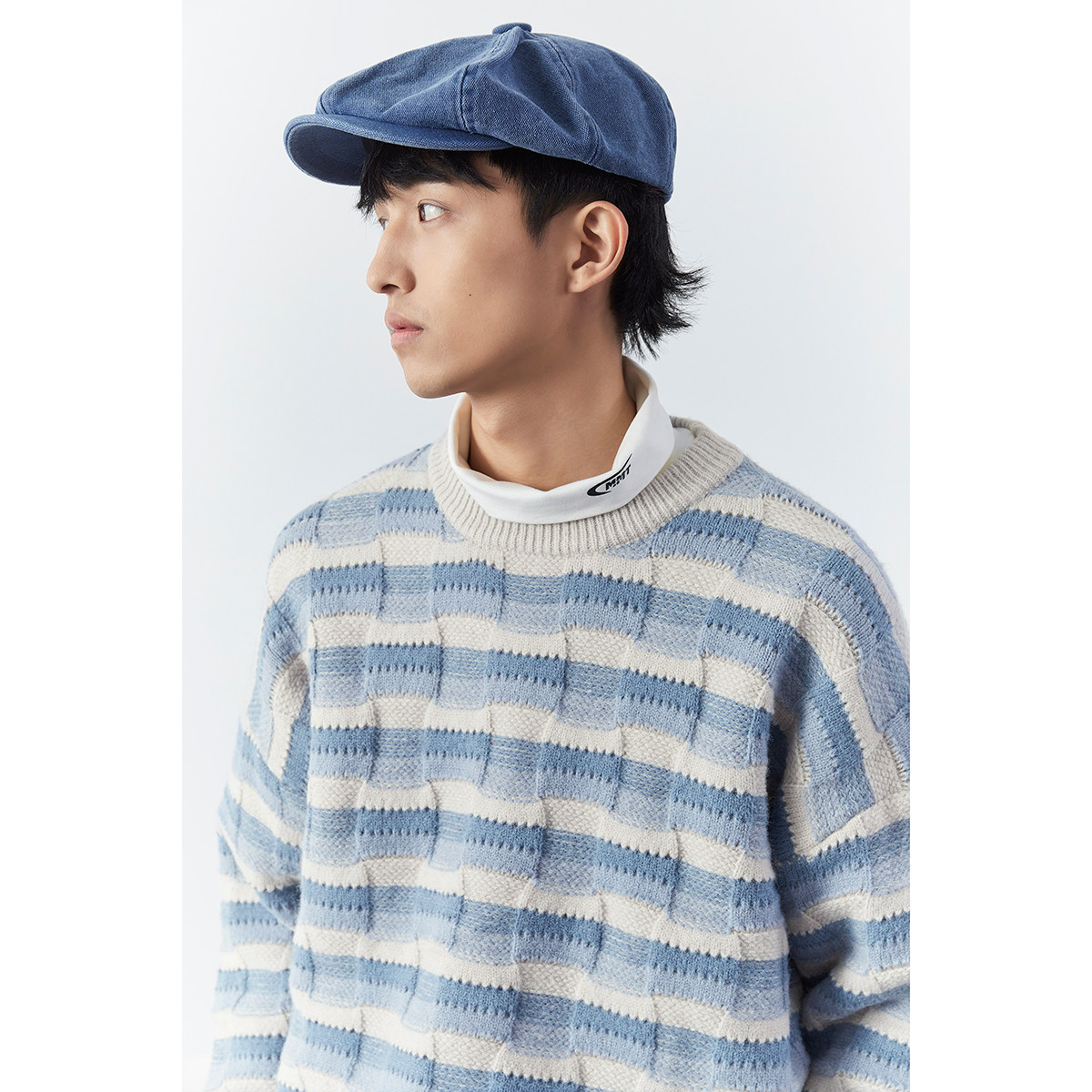 SEASONMARK秋冬新款线条针织圆领毛衣休闲百搭简约保暖情侣卫衣男