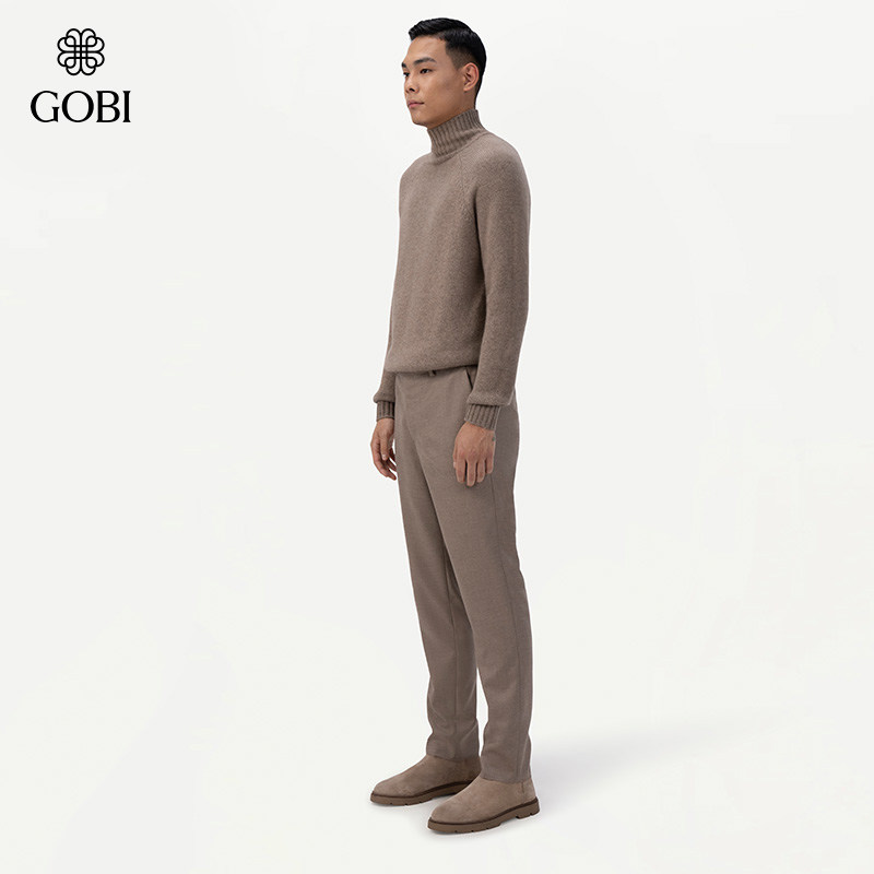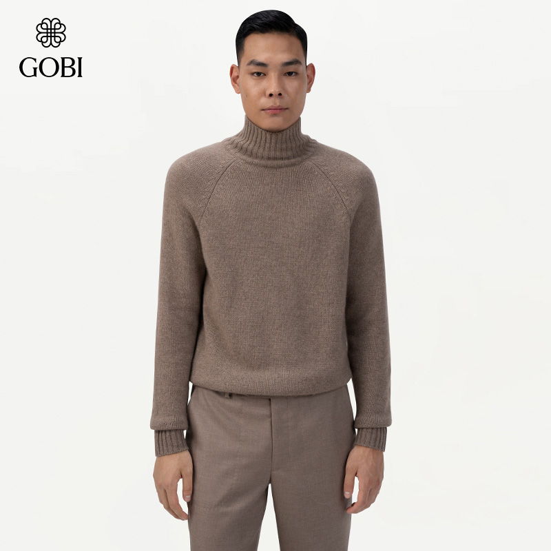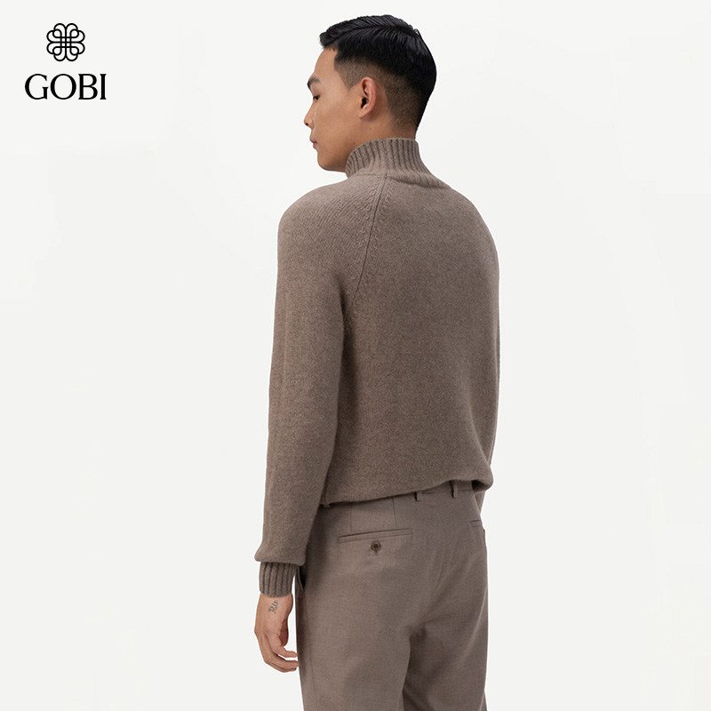 天猫GOBI戈壁秋冬宽松纯色翻领高领简约男士针织衫山羊绒毛衣上衣UK44