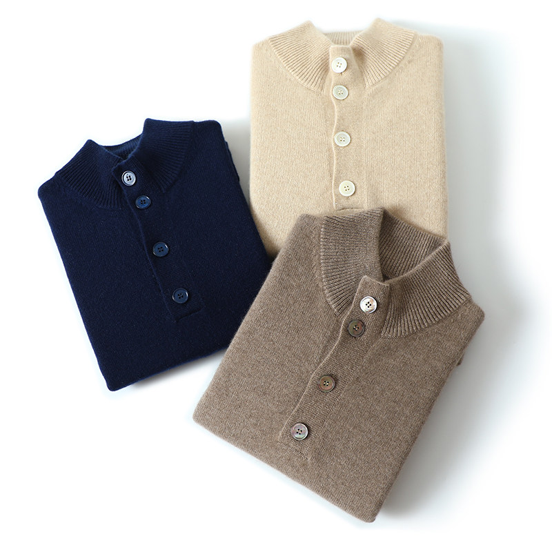 鄂尔多斯市男士加厚羊毛衫半高领打底针织衫圆领羊毛衫爸爸装毛衣