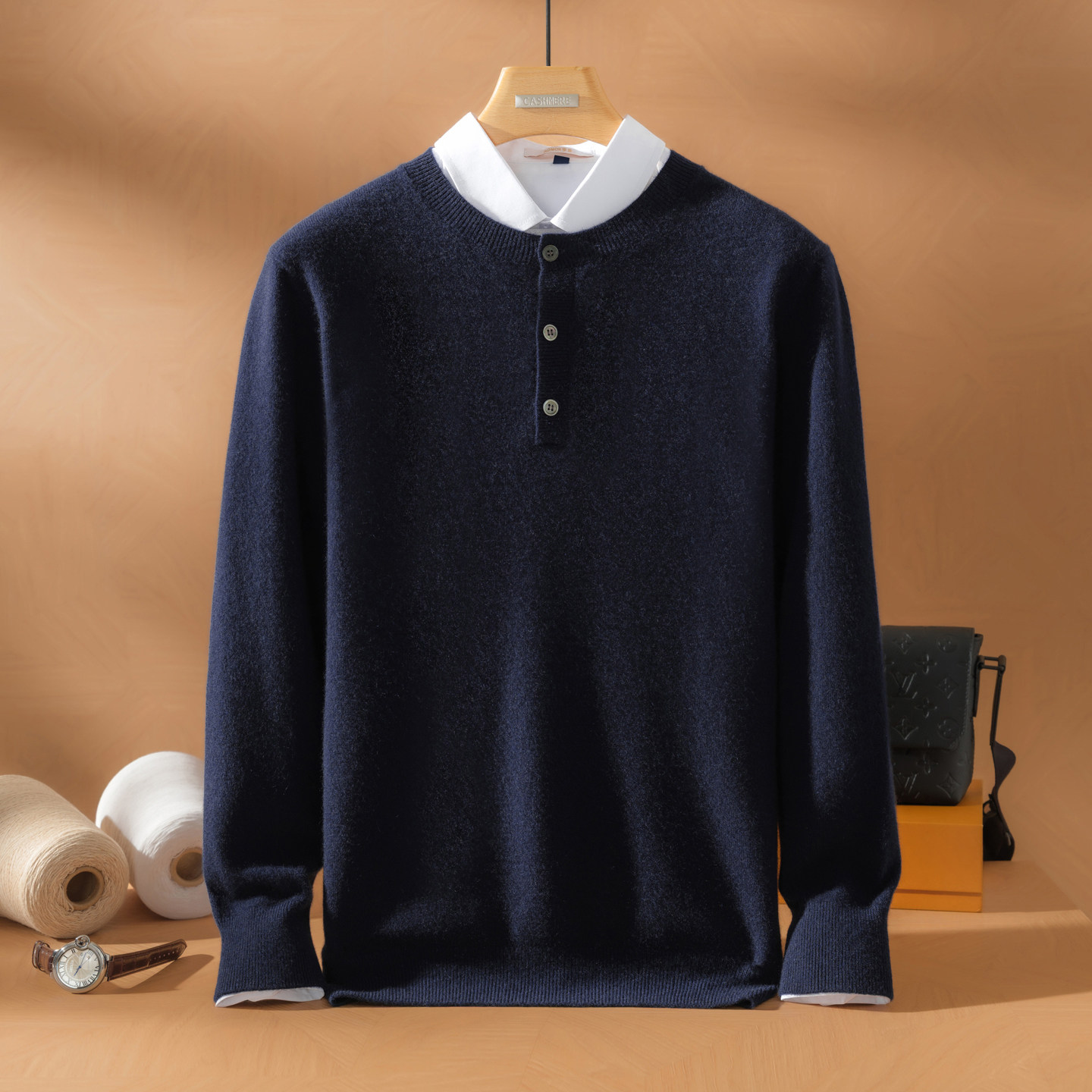 鄂尔多斯市男士加厚羊毛衫半高领打底针织衫圆领羊毛衫爸爸装毛衣
