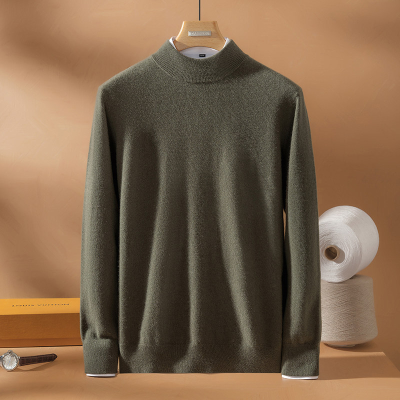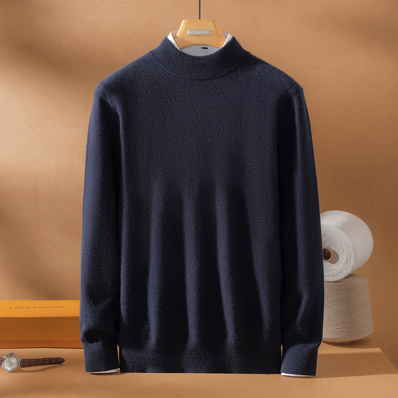 鄂尔多斯市男士加厚羊毛衫半高领打底针织衫圆领羊毛衫爸爸装毛衣