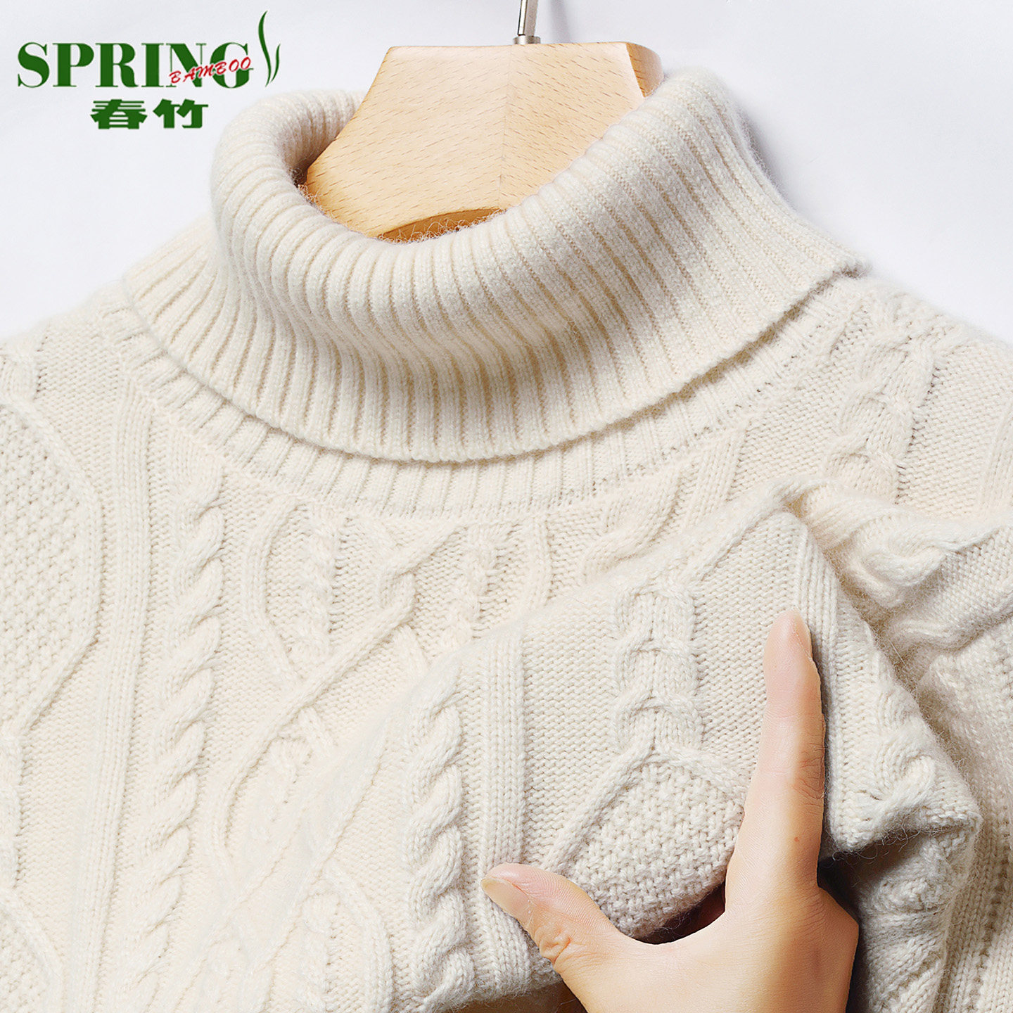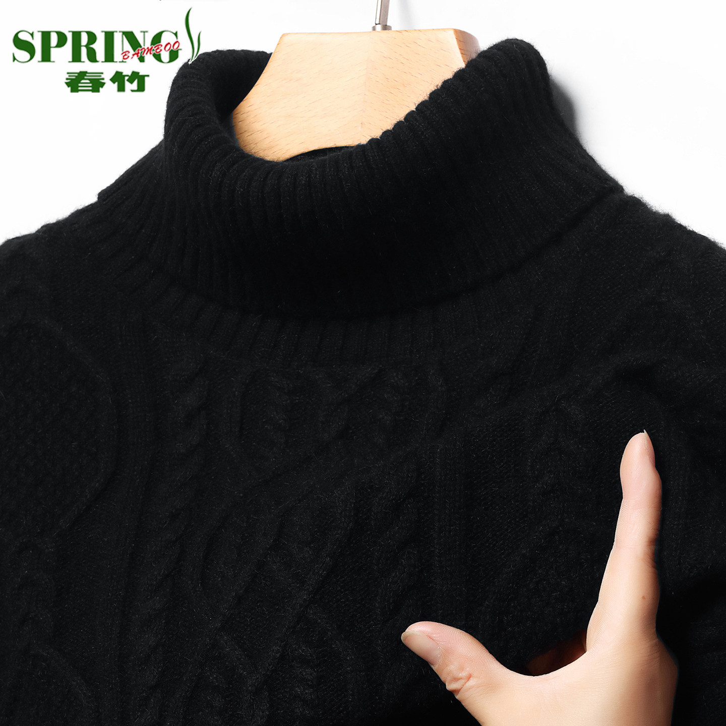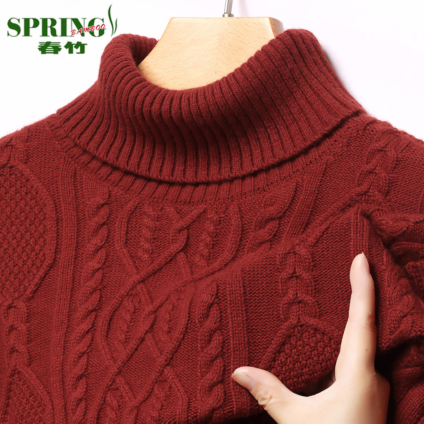 淘宝上海春竹100%羊绒衫男高翻领特厚毛衣中老年高档提花针织打底衫