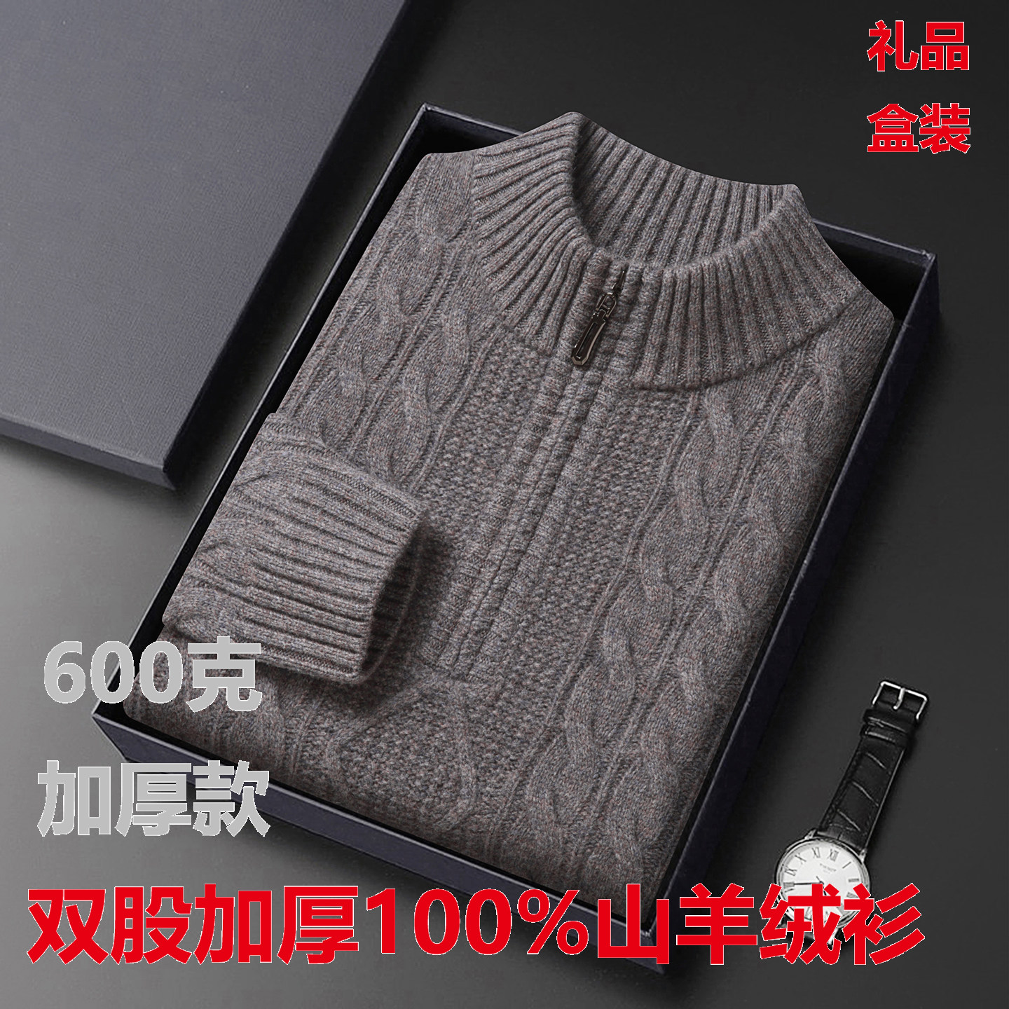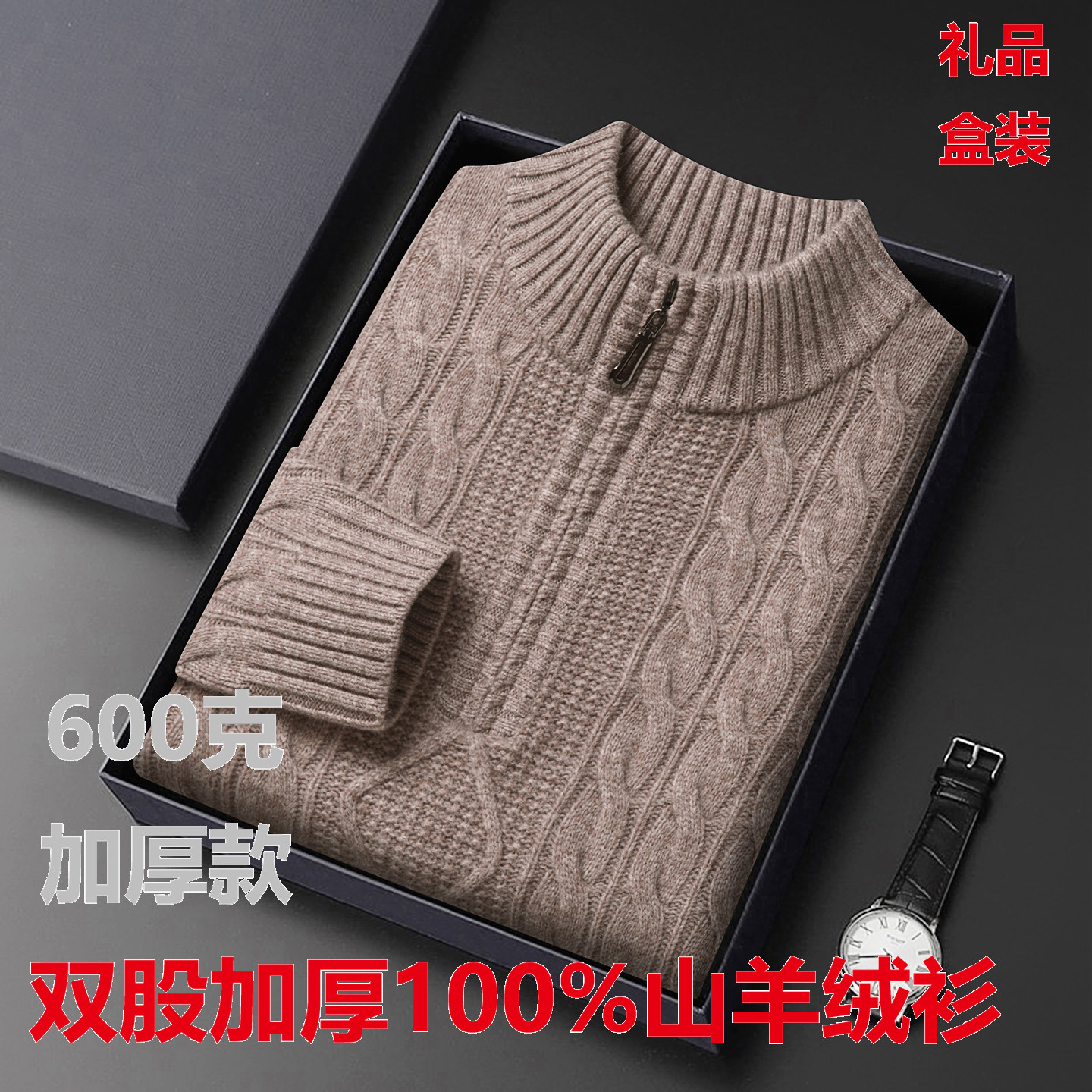 淘春竹高端特级纯山羊绒衫男半高圆领冬季新款加厚中年休闲大码毛衣