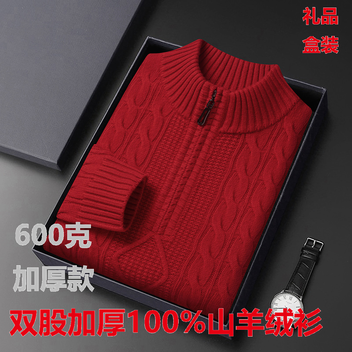 淘宝鄂尔多斯市100%山羊绒高档红色羊绒衫冬季保暖半拉链毛衣打底衫男