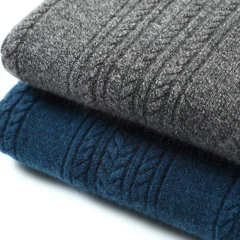 天猫简洁脱俗!加厚男士羊绒衫高领麻花纯羊绒毛衣针织打底衫秋冬宽松
