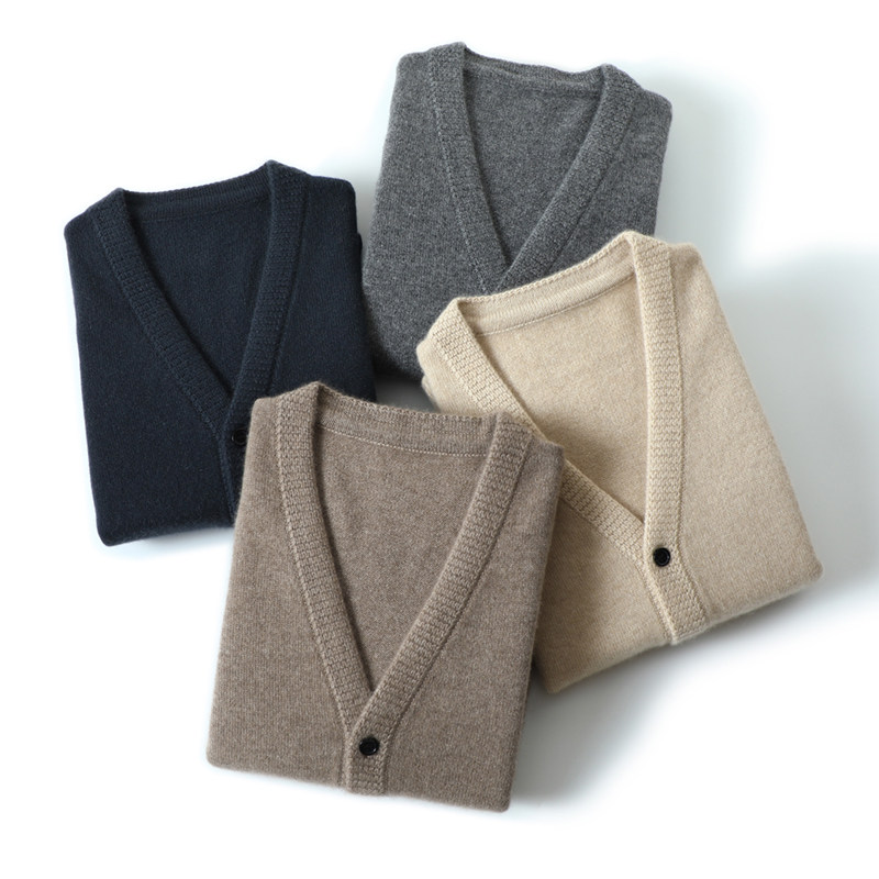 天猫意大利男装气质!加厚V领男士山羊绒开衫纯羊绒毛衣男针织衫外套