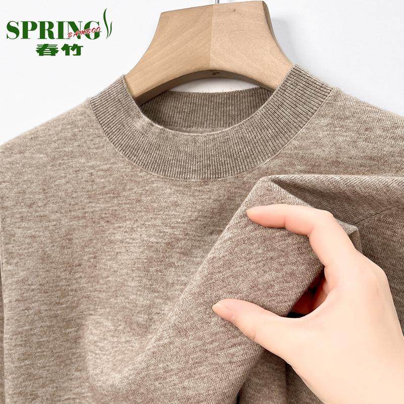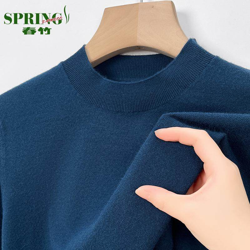 淘宝春竹春秋薄款羊绒衫男士半高领毛衣中年休闲百搭羊毛衫针织打底衫