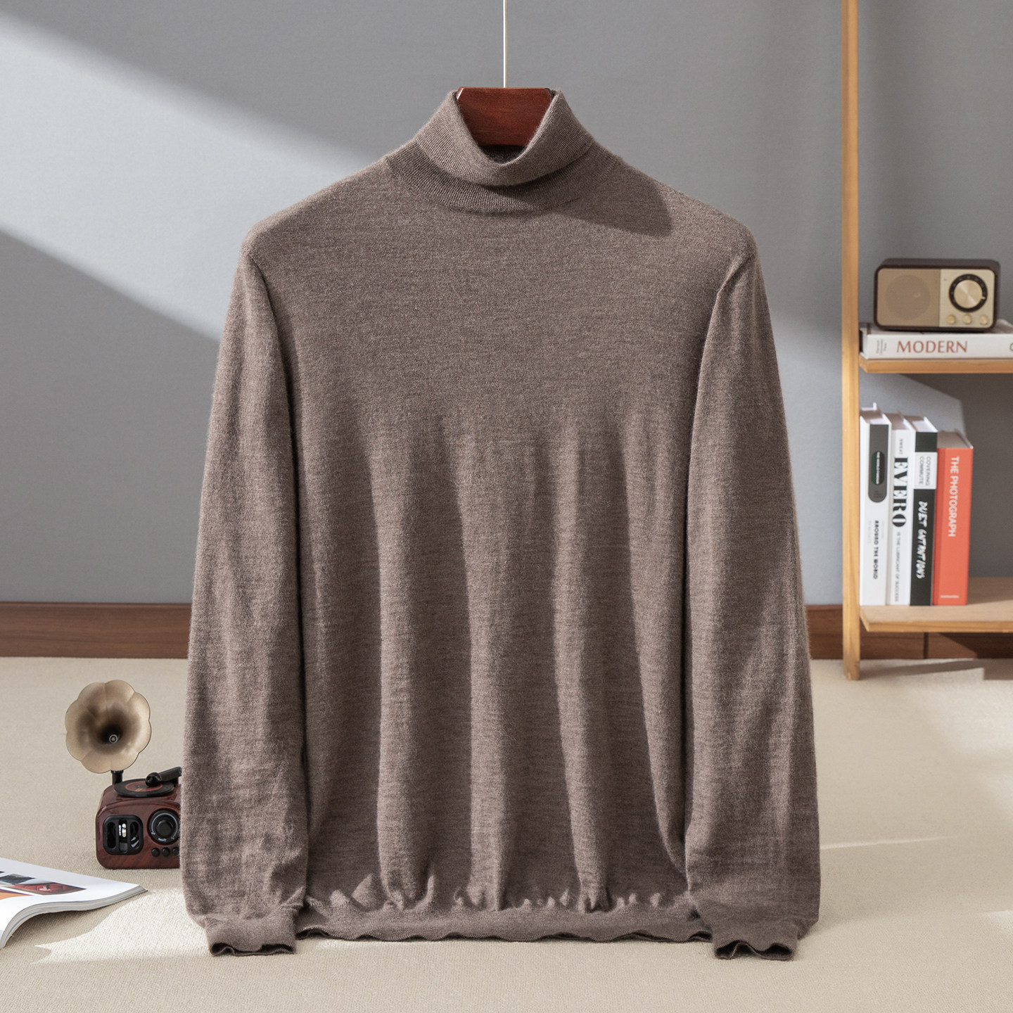 鄂尔多斯市男士加厚羊毛衫半高领打底针织衫圆领羊毛衫爸爸装毛衣
