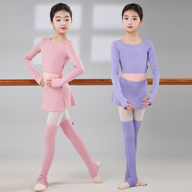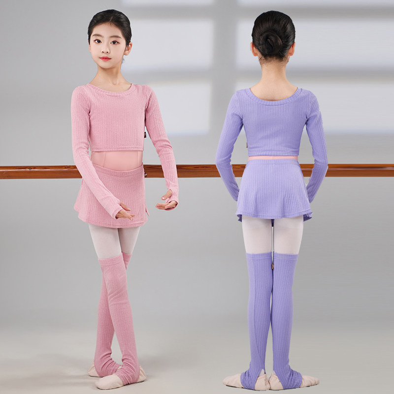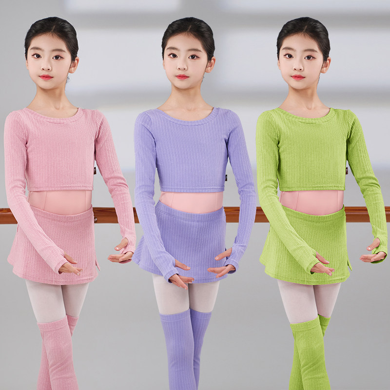 淘新款渐变色儿童舞蹈毛衣上衣长袖芭蕾舞练功服薄款外套外搭体操服