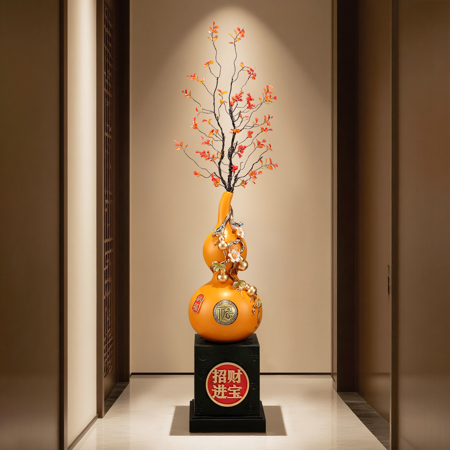 天猫旺宅葫芦花瓶客厅落地大摆件入户玄关电视柜沙发旁高款插花装饰品