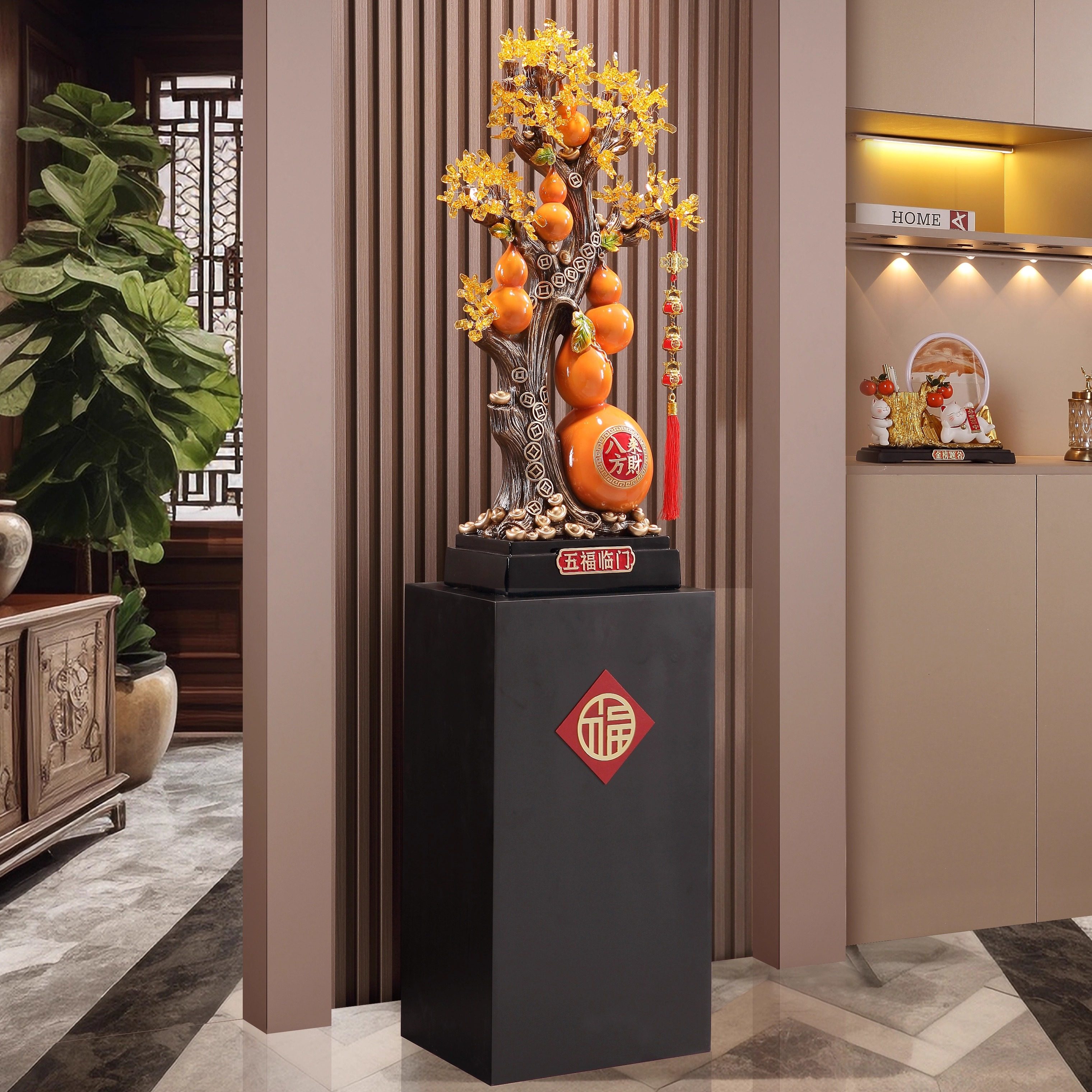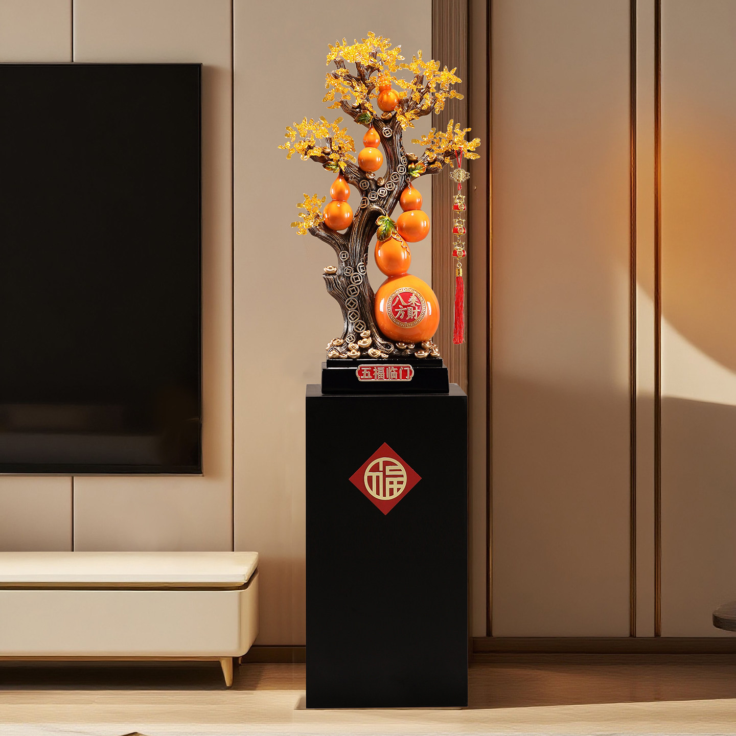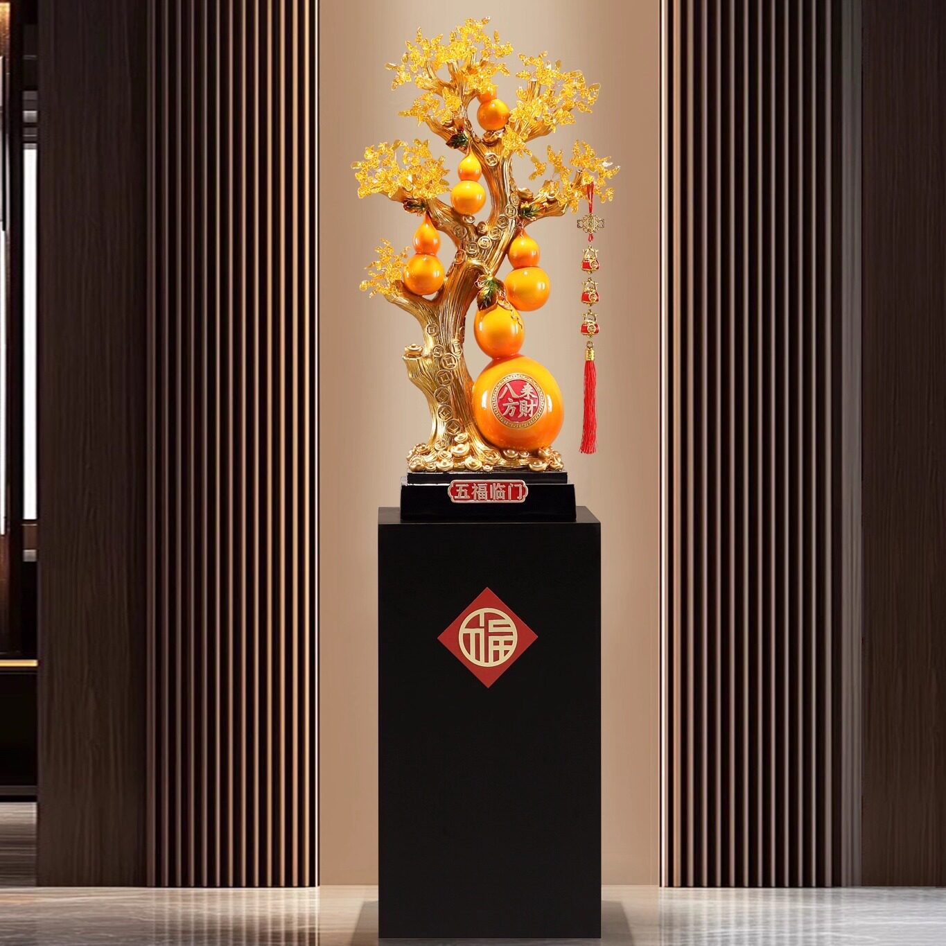 天猫五福临门葫芦落地摆件入户玄关客厅电视柜旺宅发财树大型高档装饰