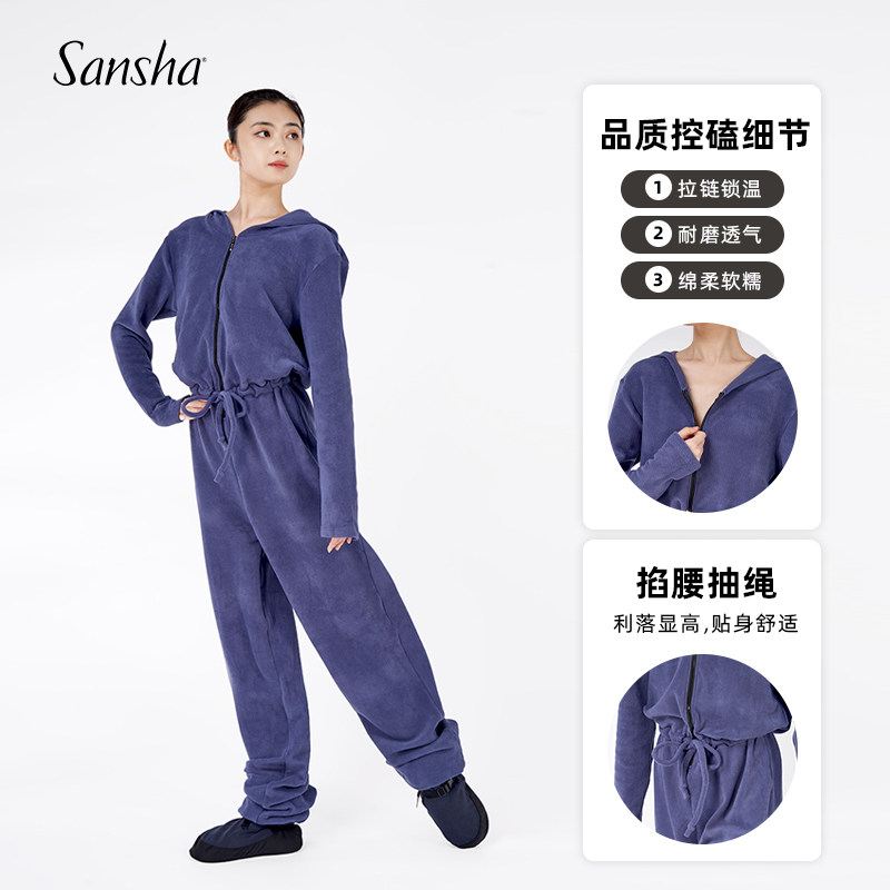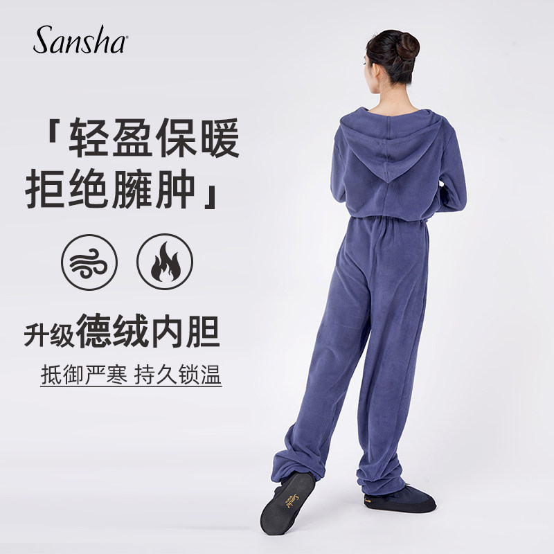淘宝sansha三沙芭蕾舞蹈服摇粒绒连体保暖成人女教师连体衣秋冬加厚