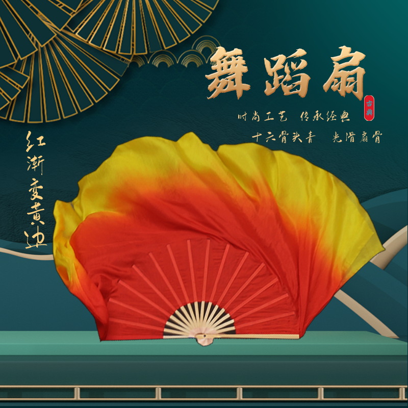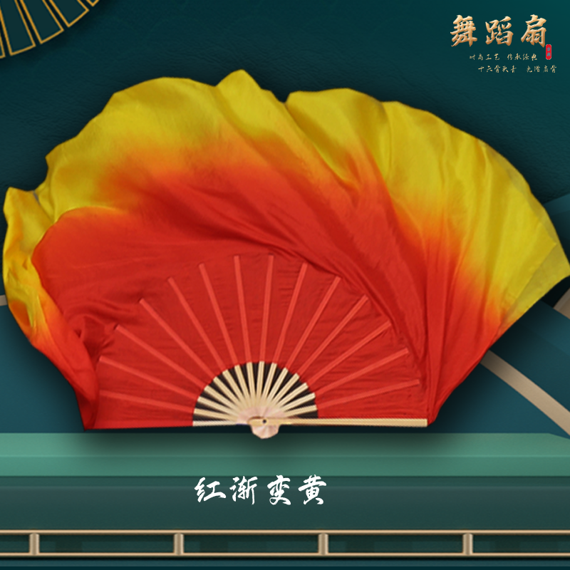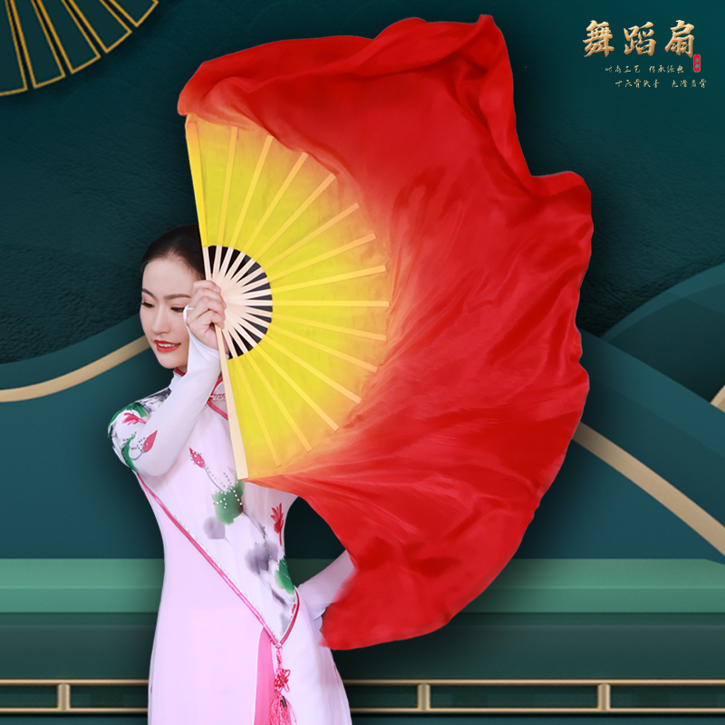 淘宝真丝舞蹈扇跳舞扇加长双色秧歌扇火焰扇广场舞红黄渐变开场舞扇子