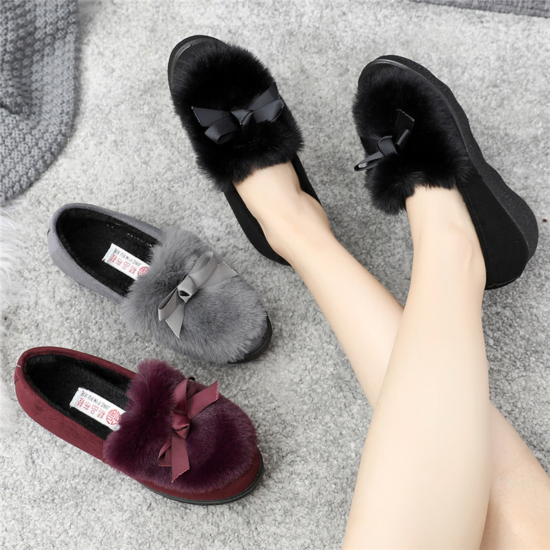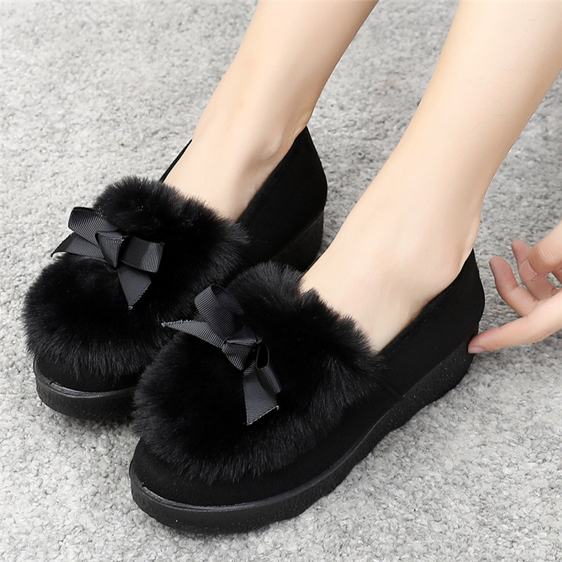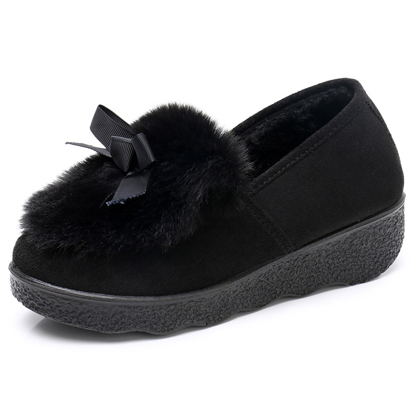 天猫毛毛鞋女秋冬季新款老北京布鞋软底工作鞋厚底加绒豆豆鞋保暖棉鞋