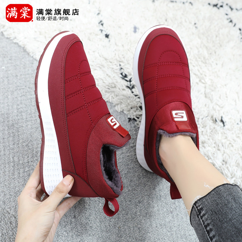 淘宝老北京布鞋女鞋冬季加绒保暖一脚蹬女士休闲运动鞋防滑妈妈棉鞋女