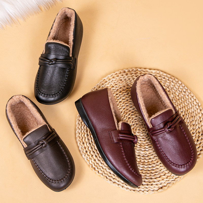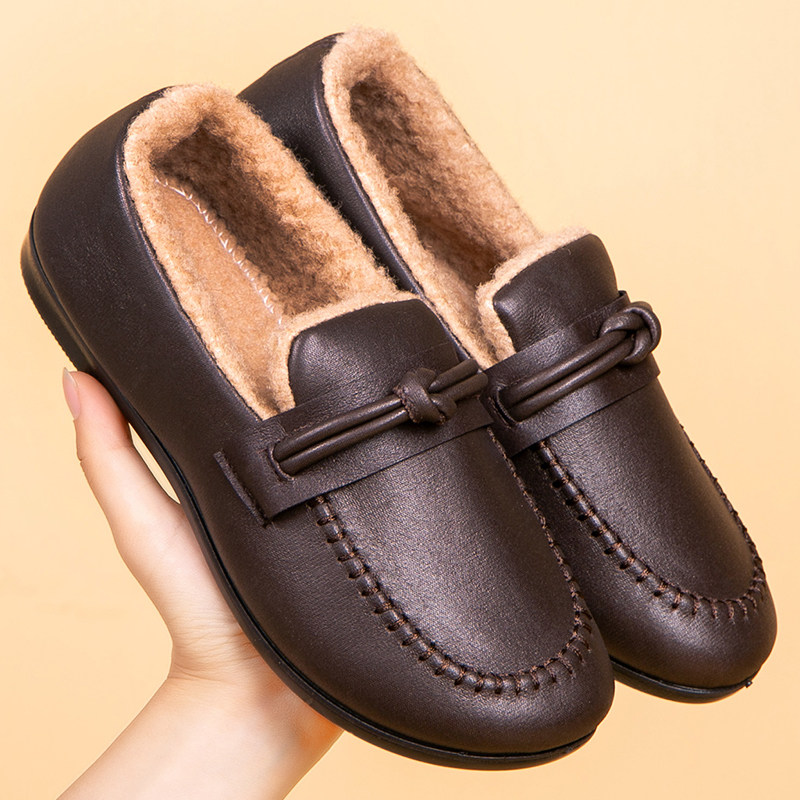 淘加绒保暖复古平底毛毛鞋女外穿休闲鞋2025秋冬款软底舒适豆豆棉鞋