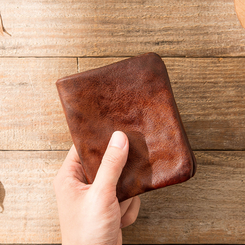 这款复古男士真皮钱包,精选优质头层植糅牛皮匠心打造,皮质柔韧细腻,纹理自然,随使用愈显醇厚质感。采用传统手工缝制工艺,针脚细密牢固,彰显匠心品质。设计融合复古格调与现代潮流,简约大气,兼具实用与时尚。大容量主仓搭配多卡位、票据夹及零钱袋,轻松收纳日常所需,满足青年商务与休闲多重场景。翻盖磁扣闭合设计,安全便捷。金属品牌标识低调点缀,凸显潮牌气质。无论是自用还是馈赠,皆显品味与格调。新款上市,引领都市男士风尚新选择,诠释经典与潮流的完美碰撞,让每一次取用都成为身份的象征。