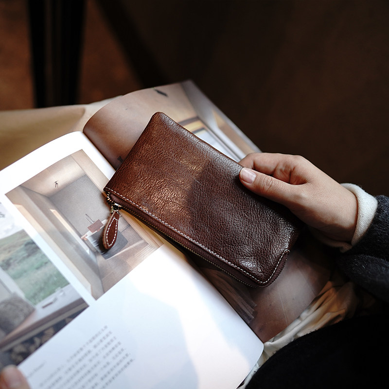 淘宝MissDeer定制植鞣牛皮简约拉链零钱包真皮卡包手机收纳包长款钱包