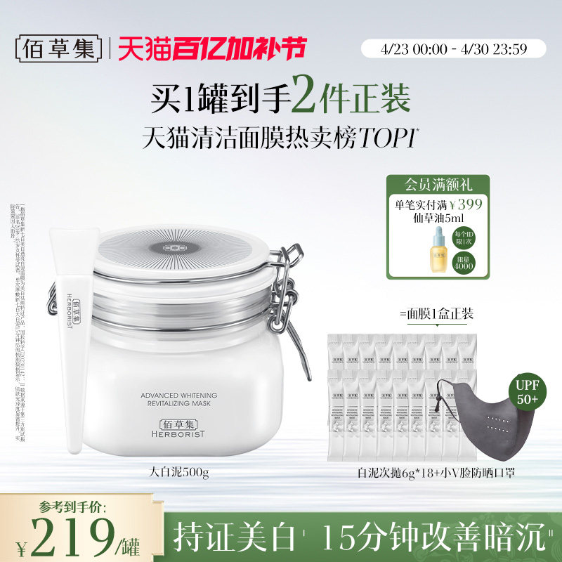 天猫【3.0版】佰草集新七白大白泥美白特证祛斑去黄涂抹面膜清洁泥膜
