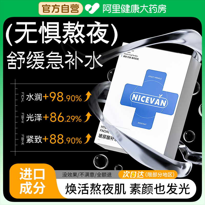 天猫华熙生物玻尿酸补水面膜保湿紧致抗皱去黄气暗沉舒缓修复官方正品