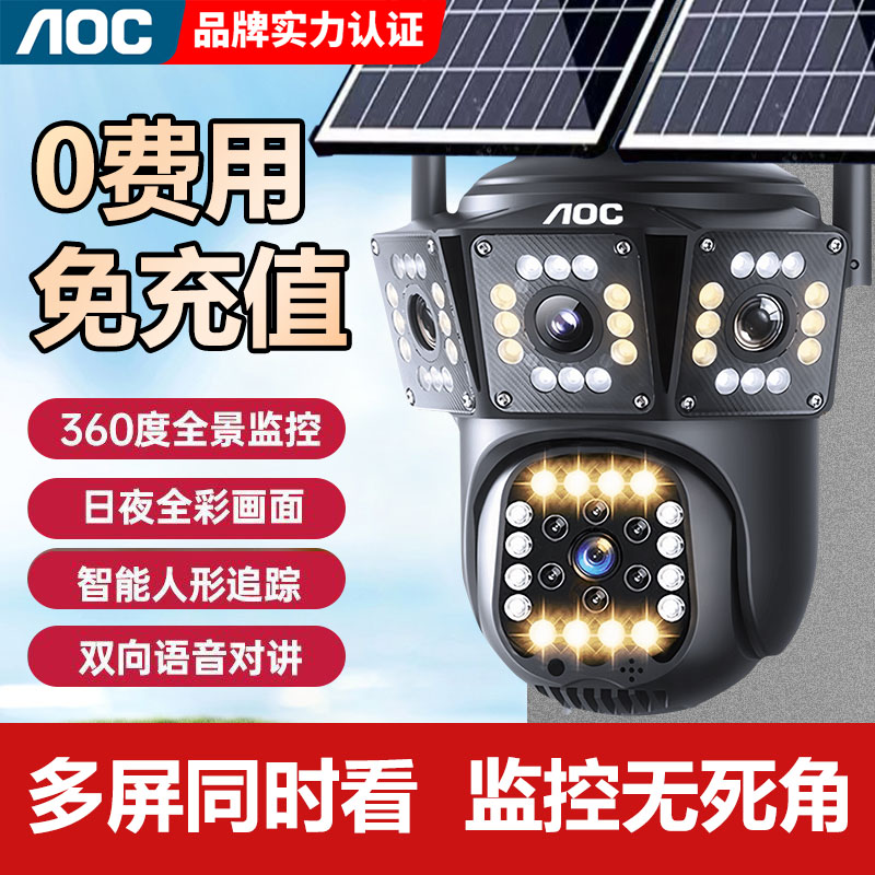 淘千鸟物联免流量三画面太阳能监控摄像头室内外4G连接远程手机户外