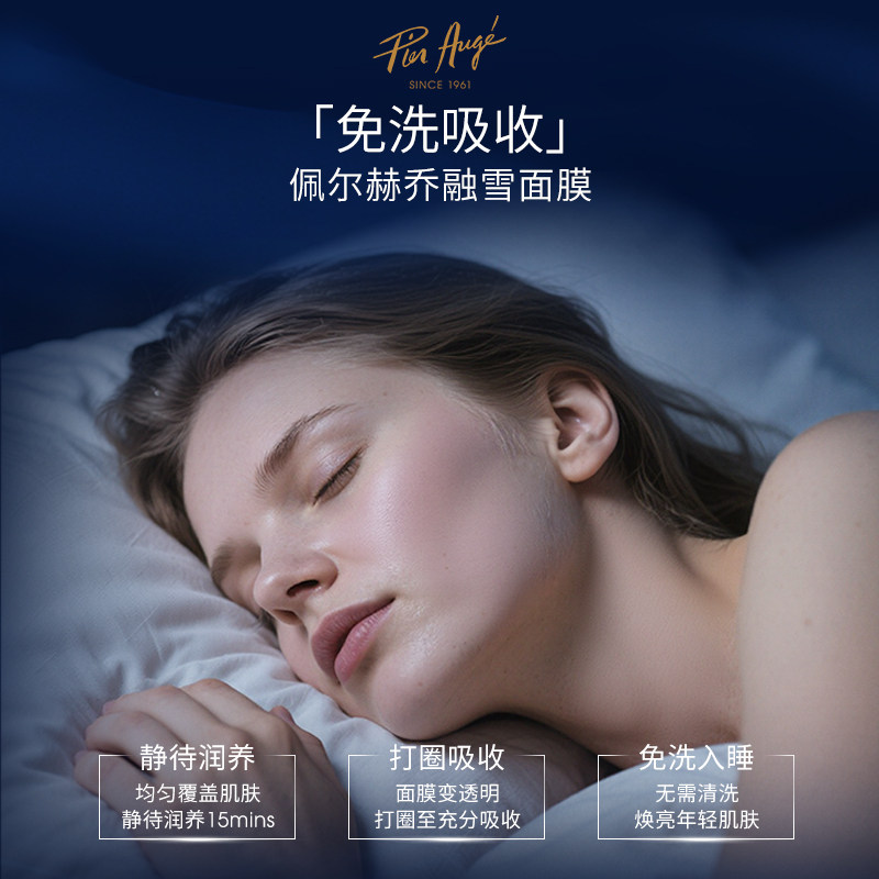 【欧洲溯源法国站】佩尔赫乔融雪面膜,源自法国纯净实验室,融合前沿PDRN科技与天然冰川融雪精粹,打造这款免洗涂抹式睡眠面膜。质地轻盈如雪融,触肤即化,深层渗透修护受损肌底,强韧屏障,提升肌肤紧致度。富含多重活性肽与抗氧化成分,夜间持续滋养,改善暗沉、细纹与松弛,唤醒肌肤原生弹力。无需清洗,安心过夜,晨起肌肤细腻透亮,焕发健康光采。专为追求高效修护与奢宠体验的肌肤设计,是欧洲高端护肤理念与中国消费者需求的完美融合,开启夜间焕肤新纪元。