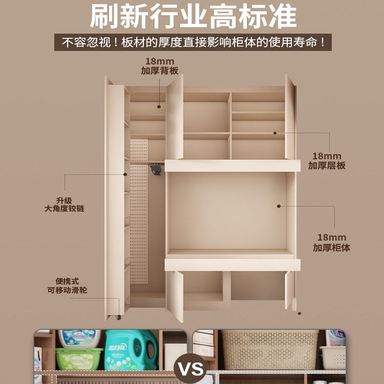 淘阳台储物柜家用防潮防晒镜面冰箱柜门可定制大容量落地收纳置物柜