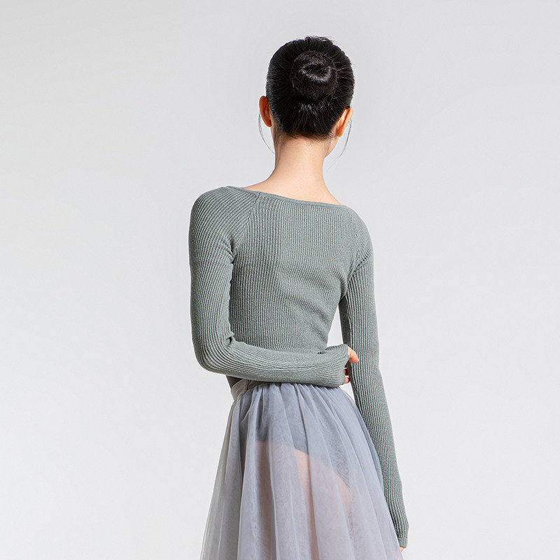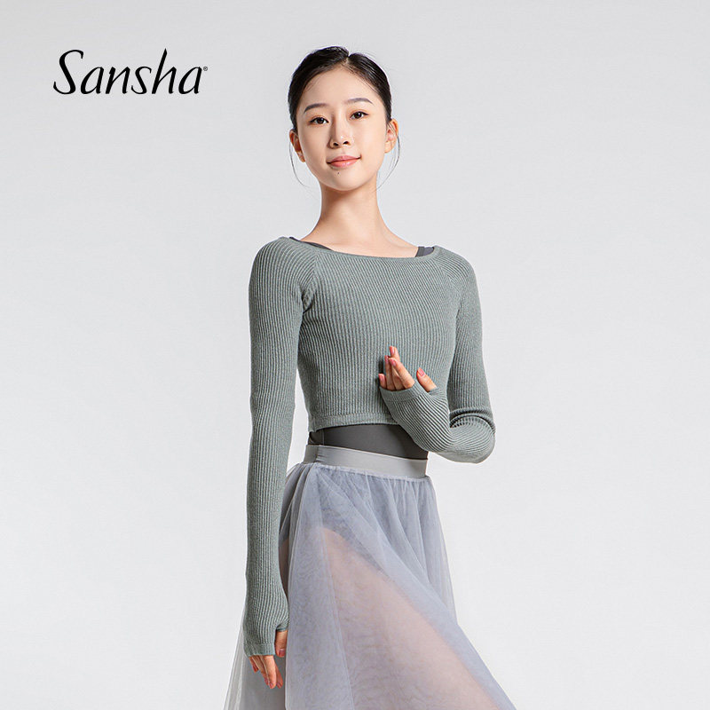 淘宝Sansha/三沙芭蕾舞秋冬练功外套舞蹈保暖上衣女 竖罗纹高弹针织服