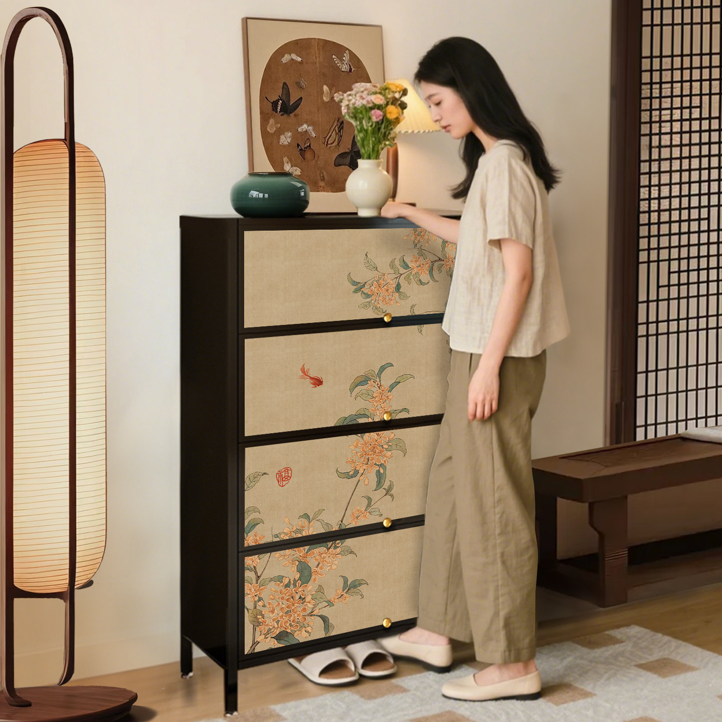 宋氏美学鞋柜是一款融合新中式设计理念的入户玄关收纳柜,采用优质钢制框架,结构稳固耐用,防潮防锈,适合现代家庭使用。其设计灵感源自宋代极简美学,线条流畅、造型雅致,兼顾实用与美感。柜体一体成型,靠墙摆放节省空间,集鞋柜、置物台与收纳功能于一体,满足日常换鞋、收纳鞋履及摆放钥匙、包包等小物件的需求。表面采用环保喷涂工艺,质感细腻,色泽温润,适配多种家居风格。无论是小户型还是大户型,这款宋式玄关柜都能提升入户空间的整洁度与格调,彰显东方生活美学。